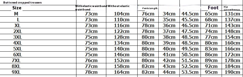Size: M,L,XL,2XL,3XL,4XL,5XL,6XL,7XL,8xl-suitable for about kg,9xl-suitable for about 157.50kg