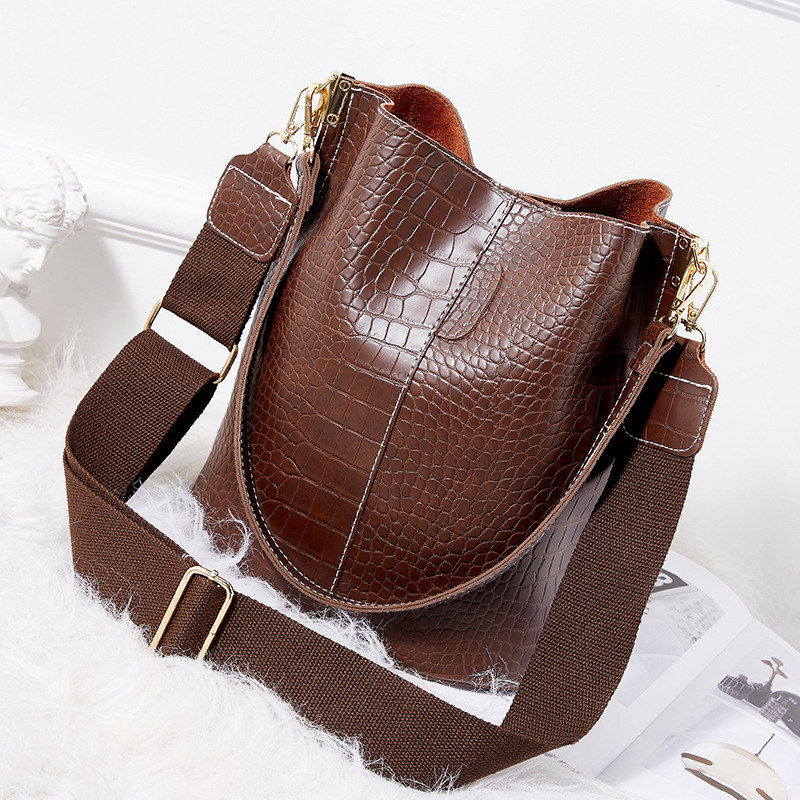 Wide Shoulder Strap Leather Shoulder Bag