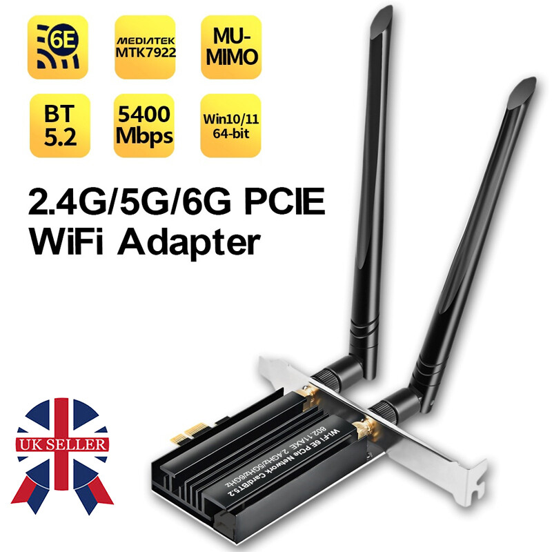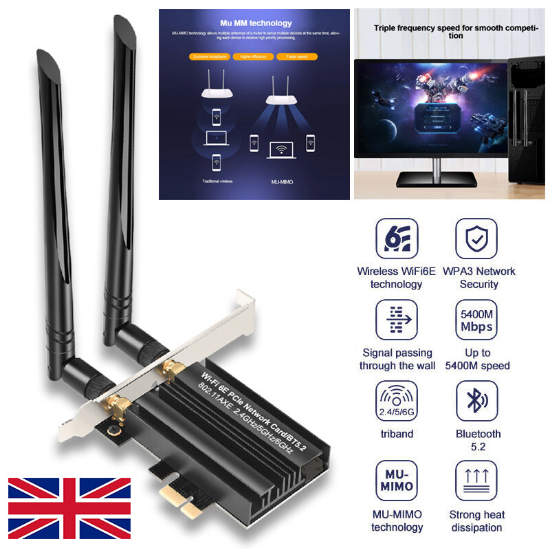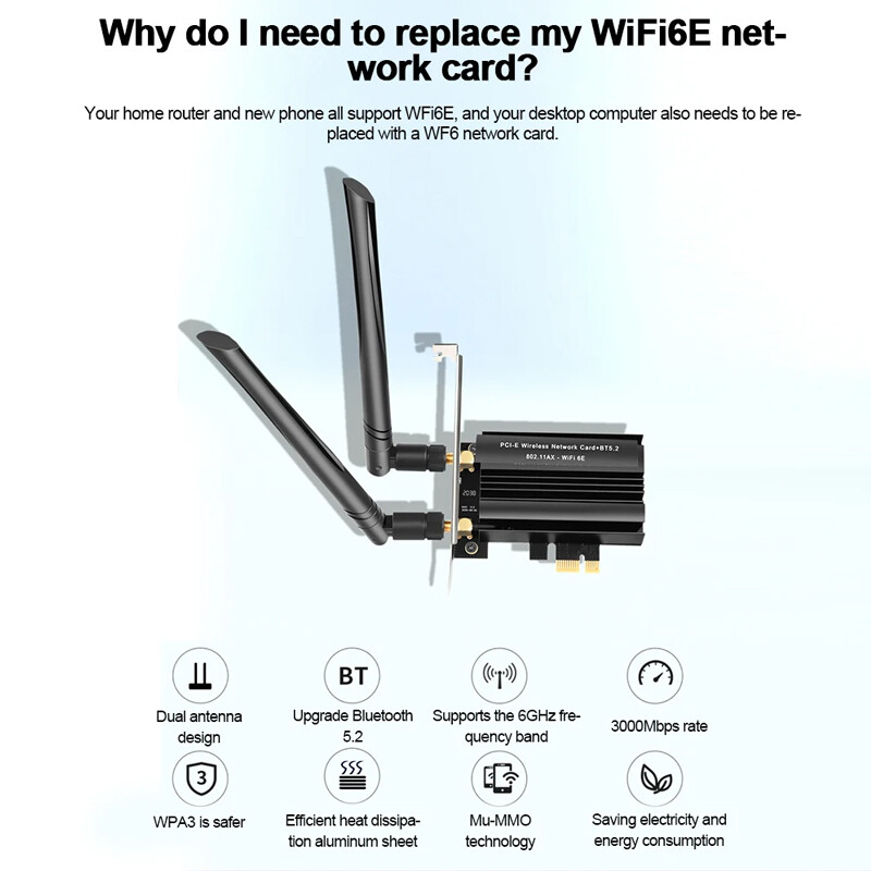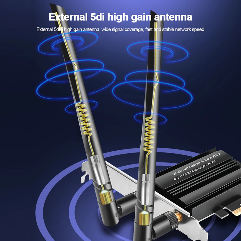 WiFi 6E Bluetooth-Compatible 5.2 PCI-E Adapter PC TRI- Band 2.4G+5G+6G Gaming Network Card Desktop Computer 6dBi 5400Mbps Wireless Accessory Feature: