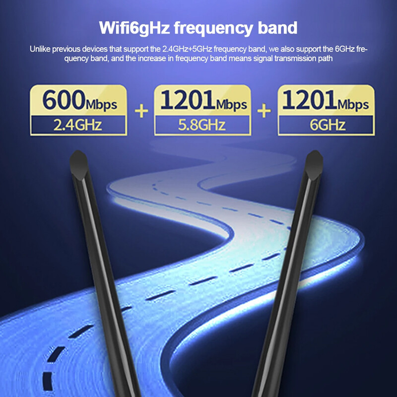 (5400mbps is the theoretical speed abbreviation, but the actual speed is 2.4G 574mbps + 5G 2402mbps+6G 2402mbps)