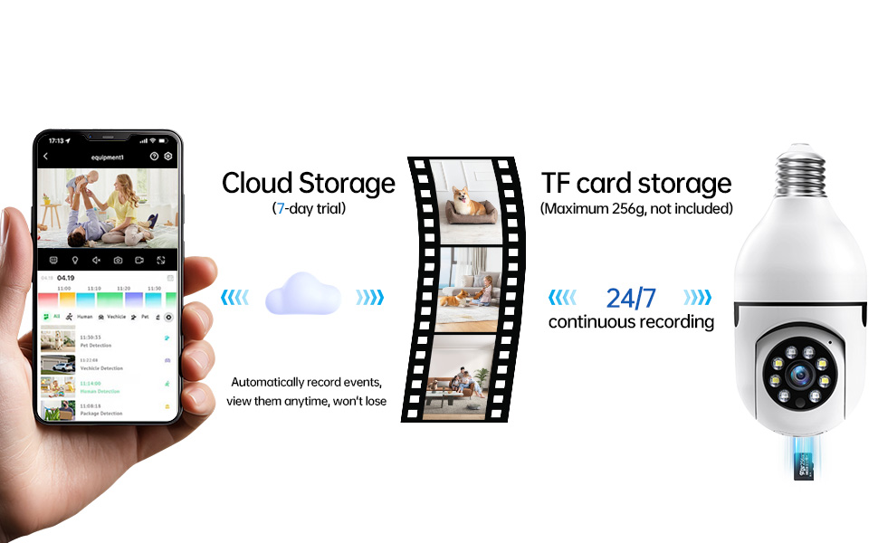 - Support: TF Card up to 128GB /cloud storage