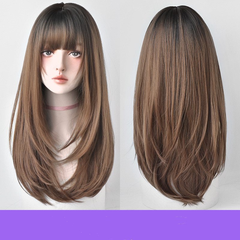 Wig hairstyle: long straight hair can be flat or oblique bangs