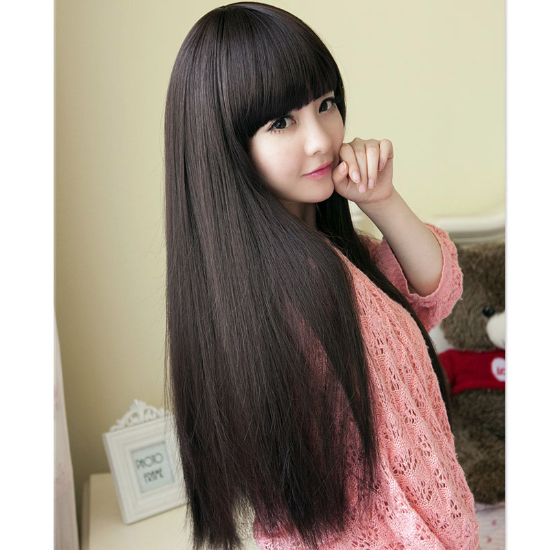 Wig hairstyle: long straight hair with bangs