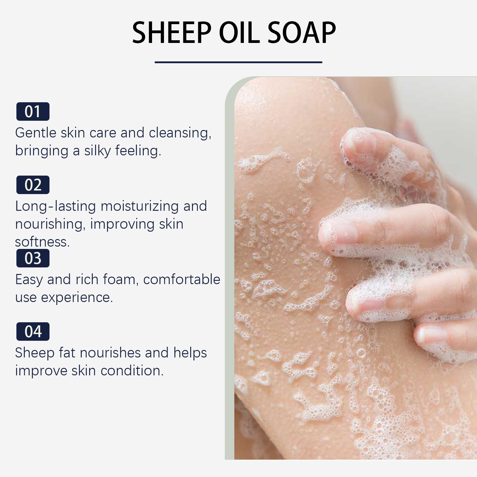 Our suet soap contains lanolin, goat's milk and glycerin. It can nourish and moisturize skin and improve skin softness; Moisturize, help skin retain moisture and avoid dryness. Nourishes skin, keeps skin soft and helps improve dryness. Its use is simple: 1. Wet the soap and gently rub your hands together to create a rich lather. 2. Apply the foam evenly to the skin and gently massage until clean. 3. Rinse thoroughly with clean water to ensure that no foam remains; 4. After use, keep the soap in a dry place and avoid soaking in water. Rich foam texture for a gentle cleaning and comfortable experience. After washing, the skin is soft, smooth and moisturized.