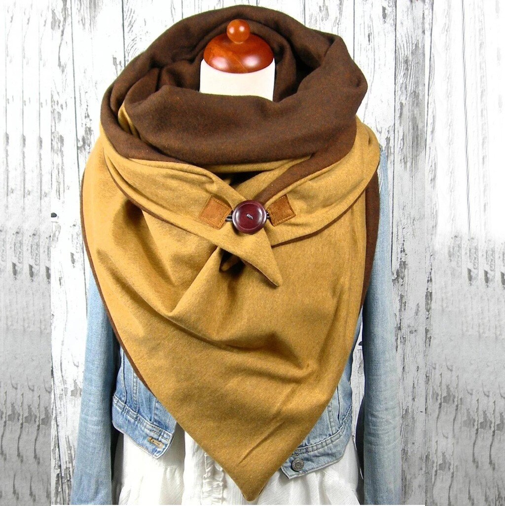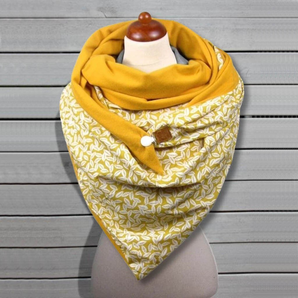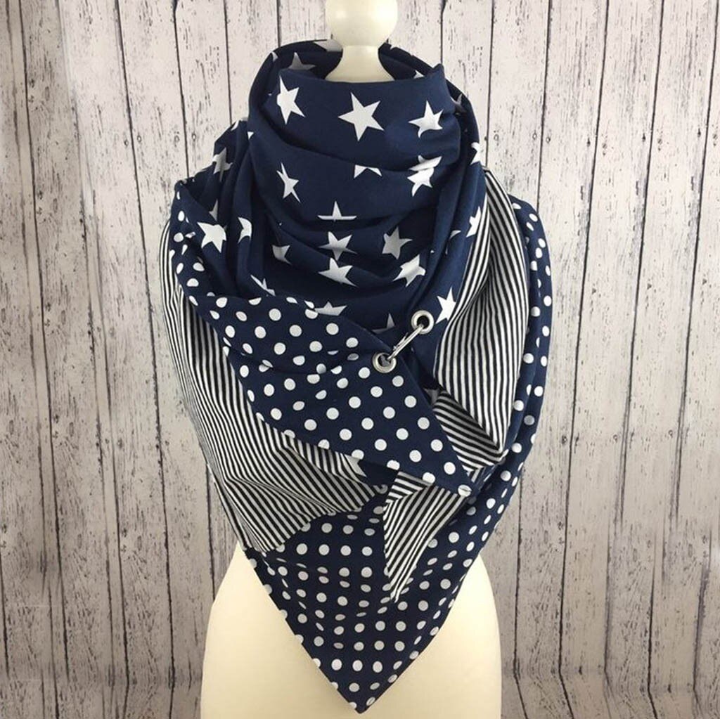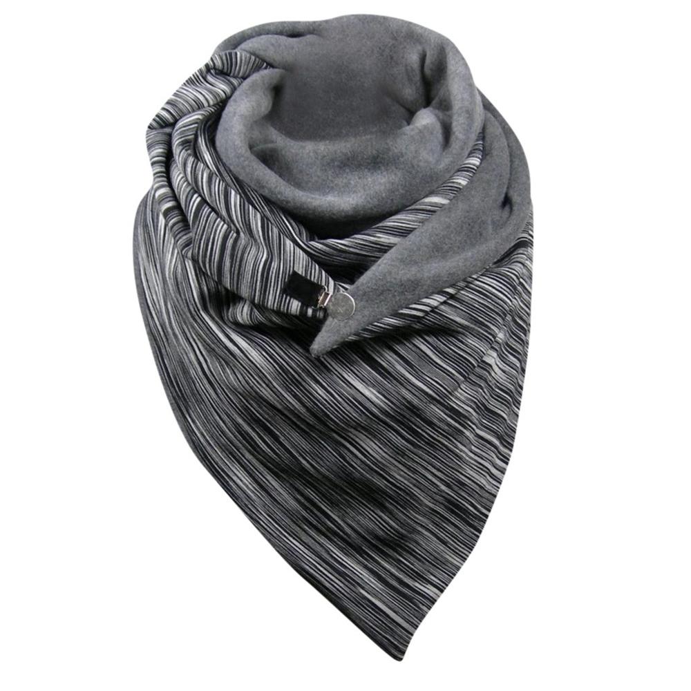 Fashionable Women's Solid Stitch Print Button Wrapped Soft Casual Warm Scarf Shawl