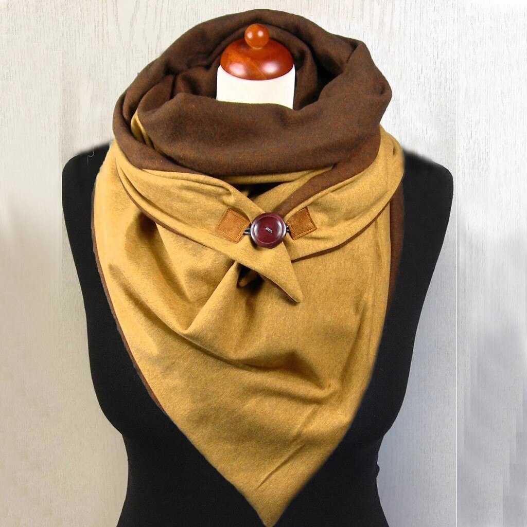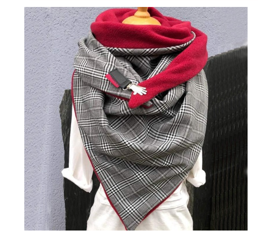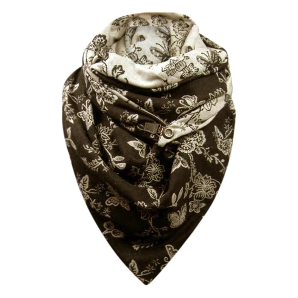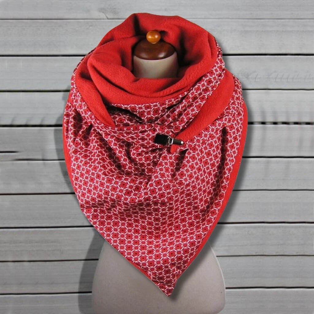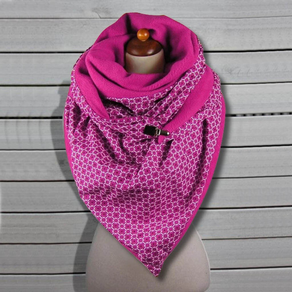 Fashionable Women's Solid Stitch Print Button Wrapped Soft Casual Warm Scarf Shawl