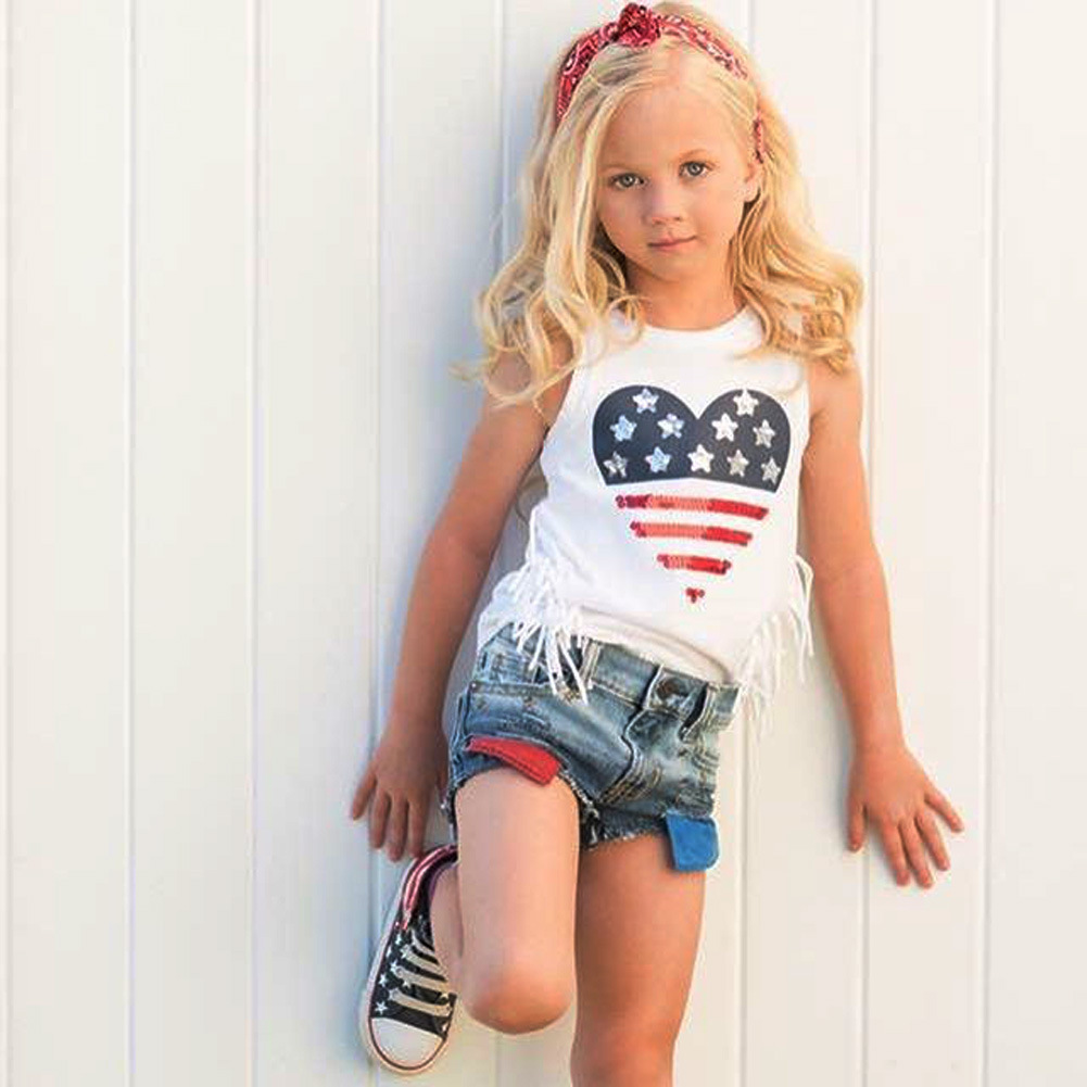 Wind Five-star Fringed Sleeveless Top Ripped Jeans Two-piece Suit