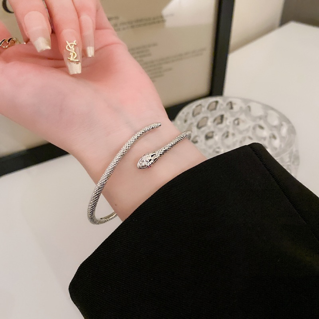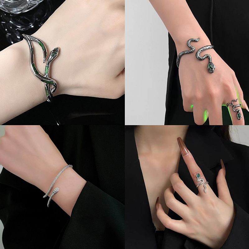 Color: S0380-snake bracelet, S0378-snake open bracelet (alloy),J0434A-silver ring, J0434B-black ring