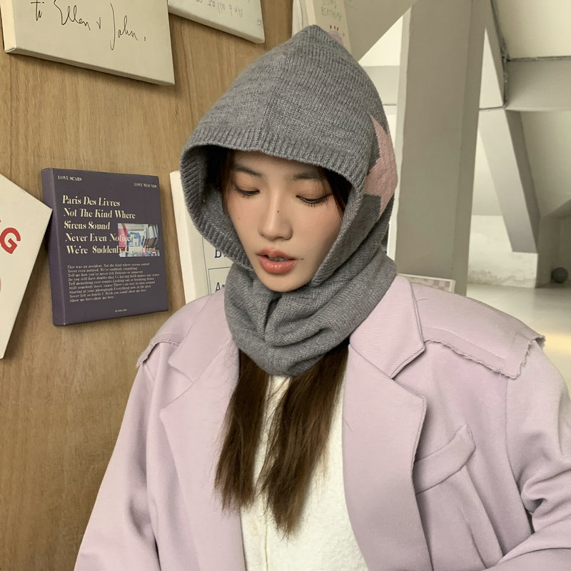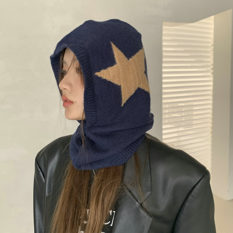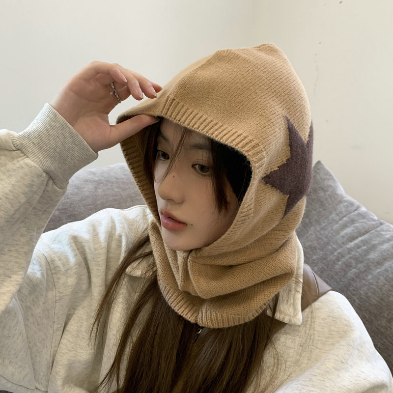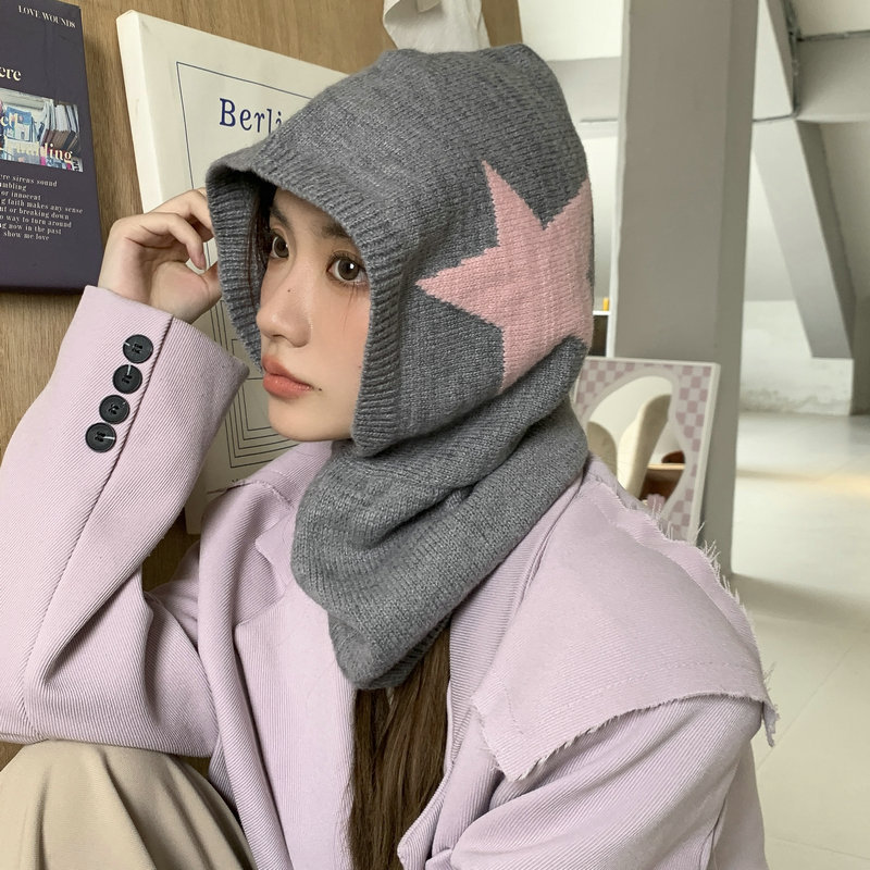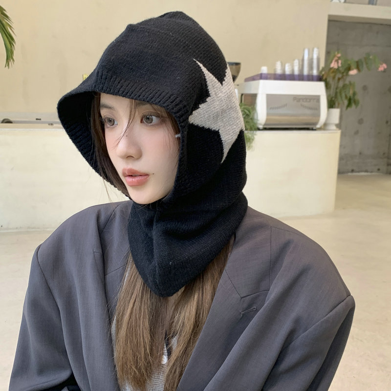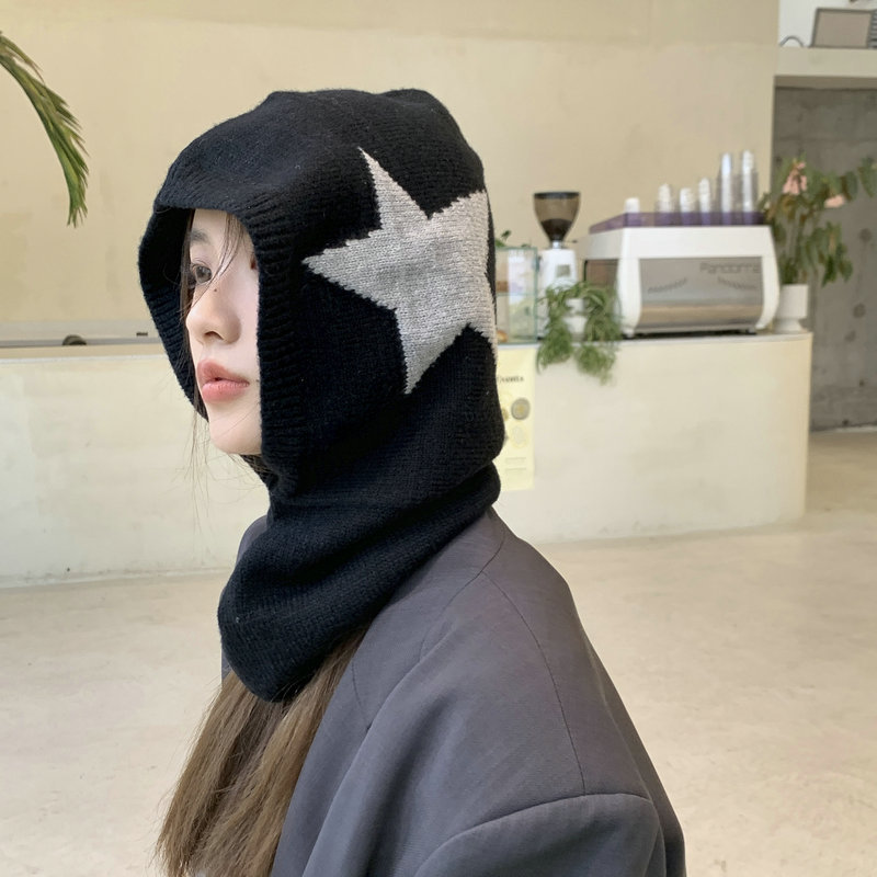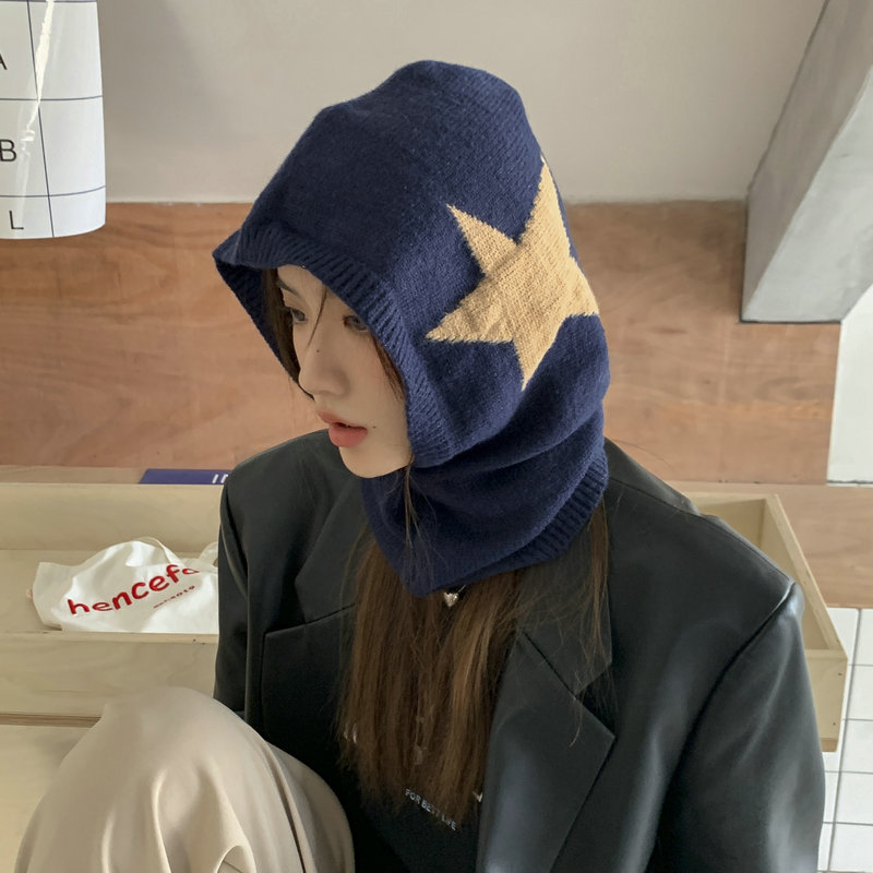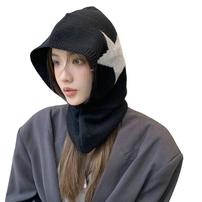 Windproof Warm Hat Scarf Integrated Five-pointed Star Toque