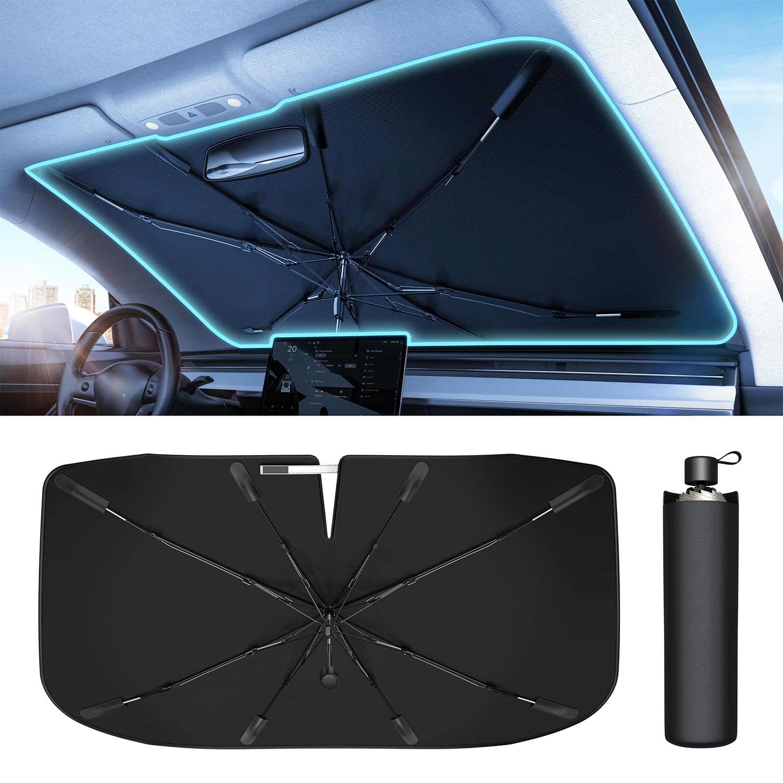 Windshield Sun Shade Umbrella For Car Spring Structure Edge Medium Protects Interior From Sun Damage Fits 99 Percent Of Vehicles