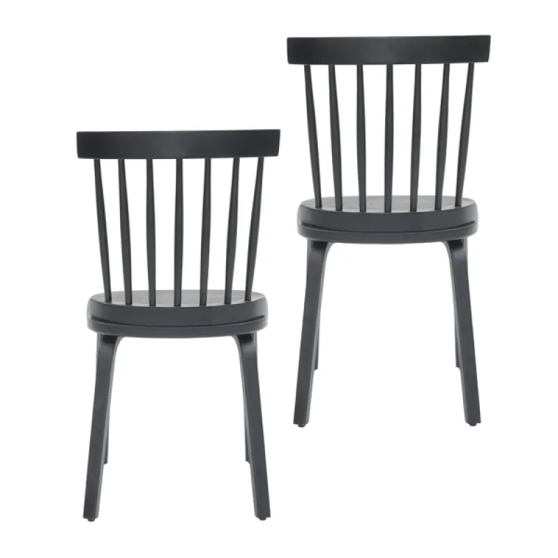 Windsor Dining Chairs Set Of 2,Wood Farmhouse Spindle Back, Widen Seat, Mid-Century Modern French Country Style, For Living Room Restaurant, Black
