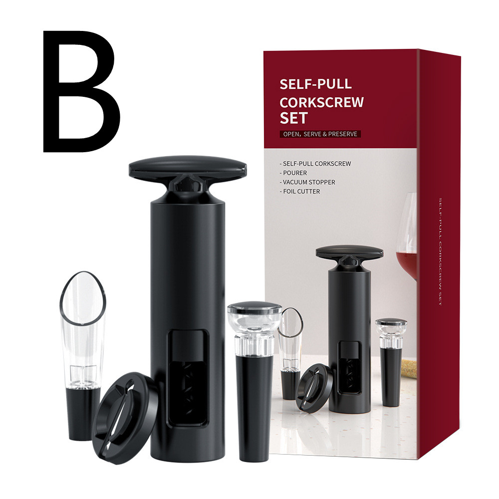 B: [Set] Includes: T-shaped wine corkscrew + paper knife + fresh-keeping stopper + wine pourer