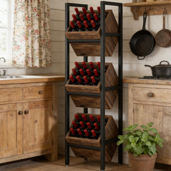 Spacious & Sleek - Measuring 14.57'W x 11.81'D x 51.18'H, this compact wine organizer stores up to 36 bottles in an easy-access angled design. Makes your 'wine area' more organized and neat. (Wine Bottles not included).