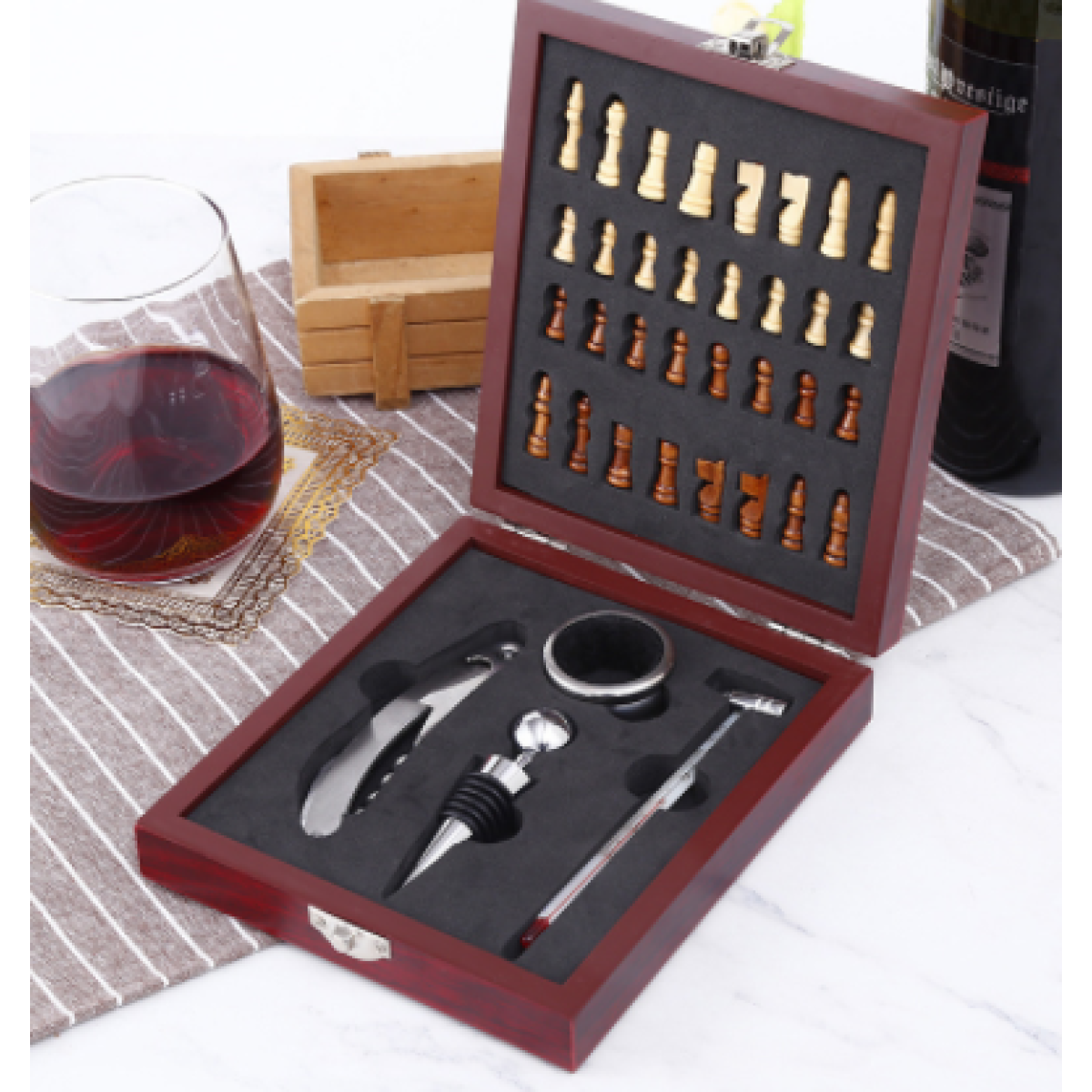 Creative Wine Tool Bottle Opener With Chess Square Wooden Box Wine Gift Set