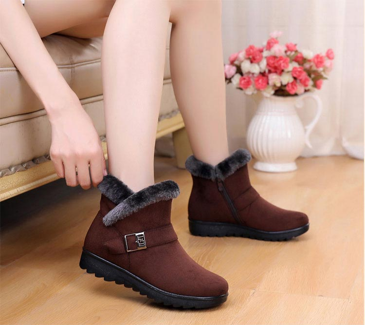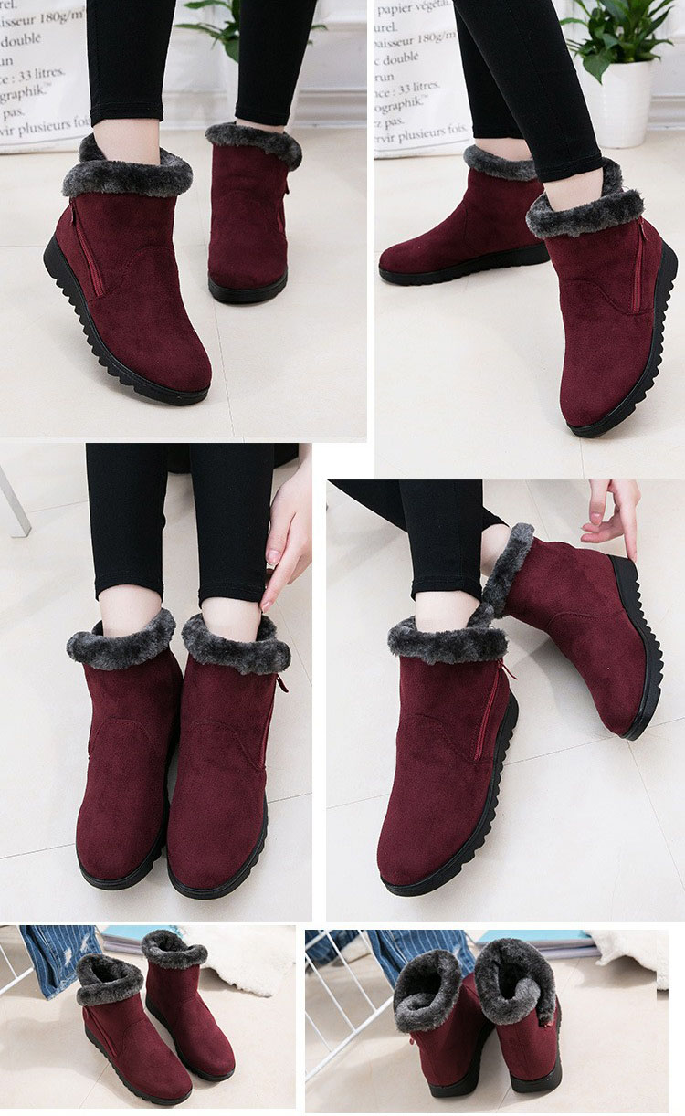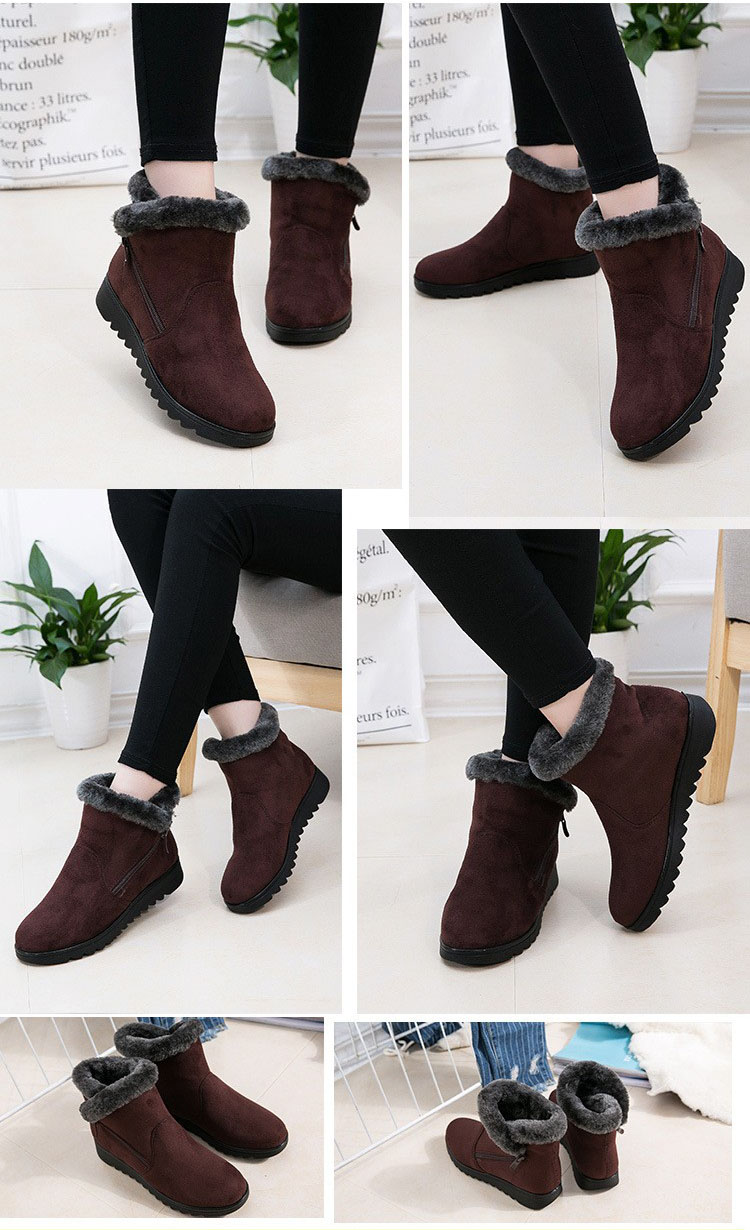 Winter Boots Women Warm Plush Snow Boots Zipper Comfort Flats Shoes