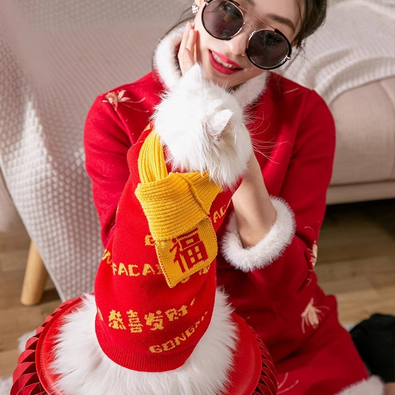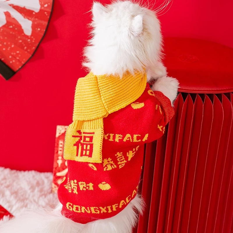 **Traditional Chinese Design**: Featuring a unique ethnic style with elegant buckle details, this New Year's cotton vest adds a touch of cultural charm to your pet's wardrobe.