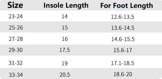 Size: 23-24 yards (internal length 14.5CM), 25-26 yards (internal length 15.5CM), 27-28 yards (internal length 16.5CM), 29-30 yards (internal length 18CM), 31-32 yards ( Inner length 19.5CM), 33-34 yards (inner length 21CM)