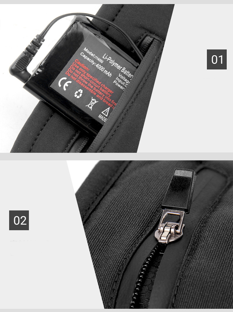 4.Battery Powered: Use 2 3.7V 4000 mAh lithium batteries. Put battery into zipper pocket on the back of the glove and plug in the pocket, then press 3 seconds to turn on the smart switch on the hand back.