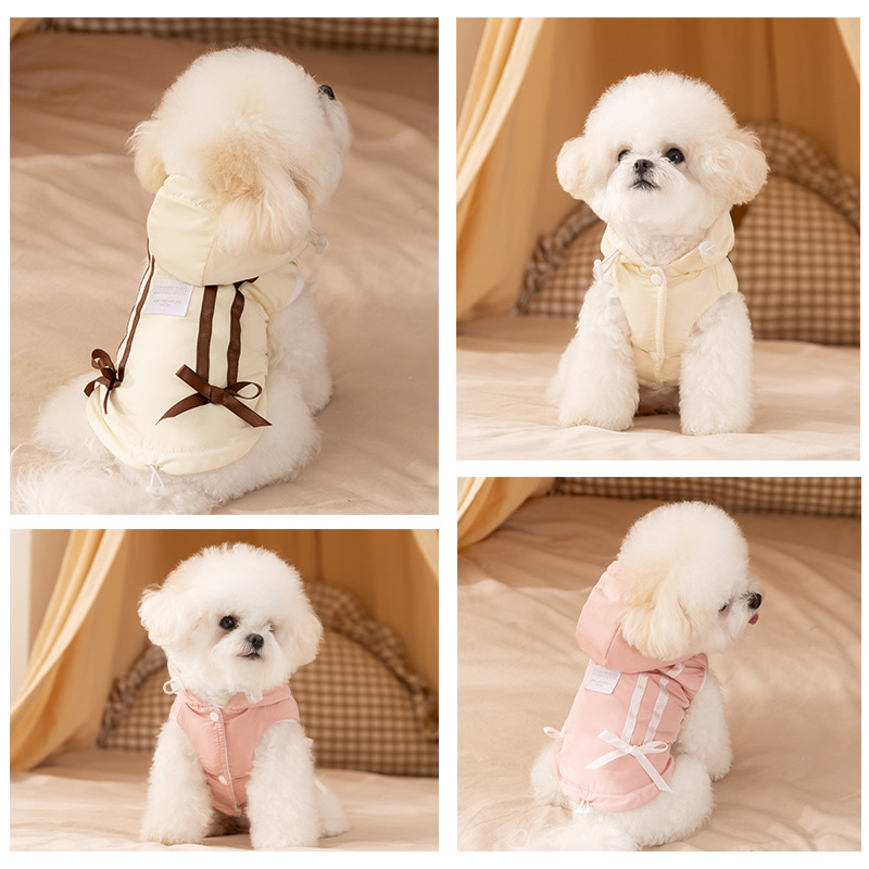 Add a touch of elegance to your small dog’s wardrobe with this Bow Tie Dog Vest! Available in soft beige and sweet pink, each vest features a hood, decorative bow ties, and a padded design for warmth and style. The button closure ensures easy wear, while the lightweight fabric keeps your pet cozy without bulk. Perfect for casual outings or special occasions, this vest combines feminine charm, comfort, and practicality, making it a must-have for pet parents who love to dress their furry friends in adorable, refined fashion.