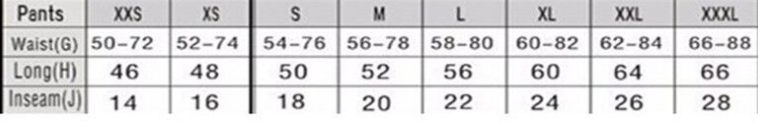 | Waist | 86 | 90 | 94 | 98 | 102 | 106 | 110 |