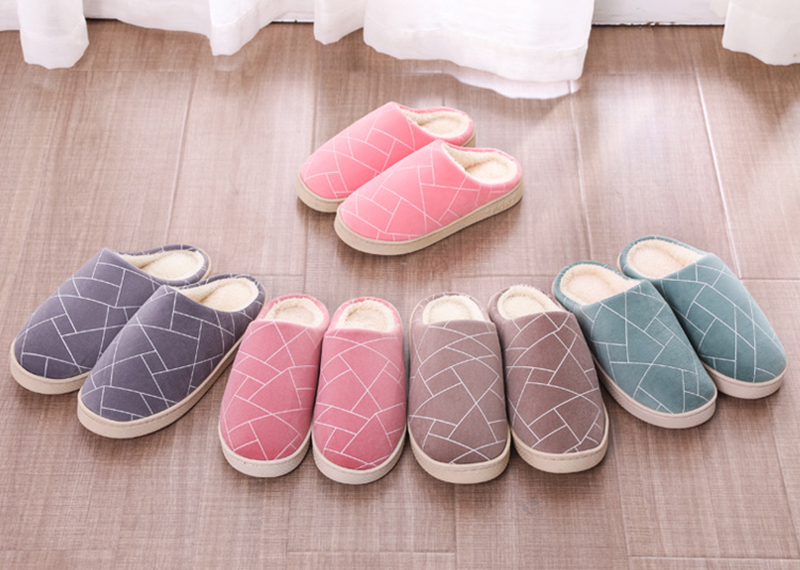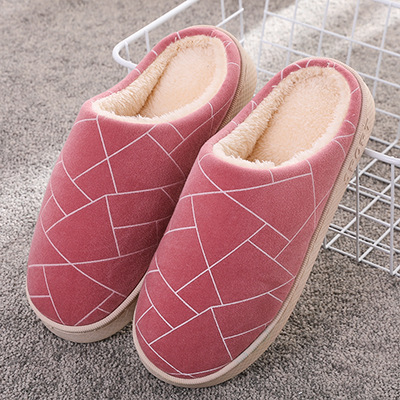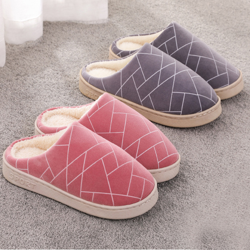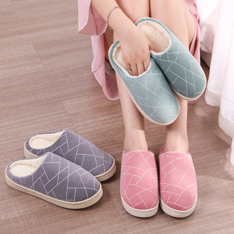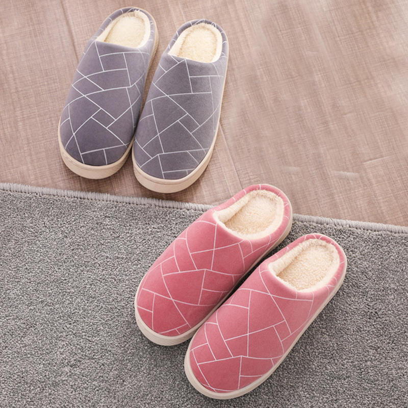 Winter House Shoes Geometry Pattern Print Slippers With Warm Plush