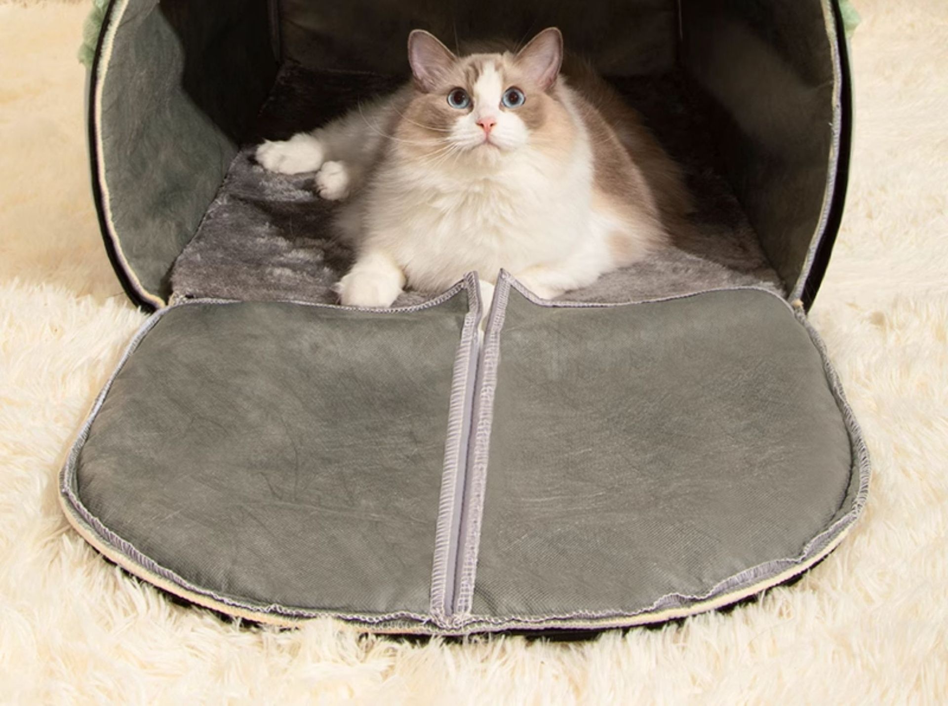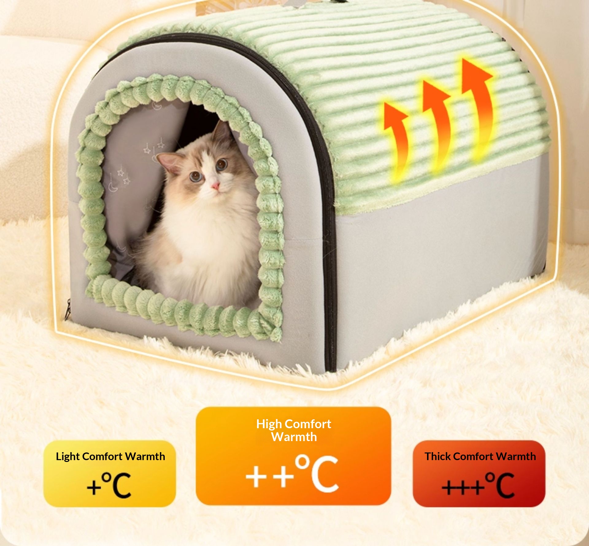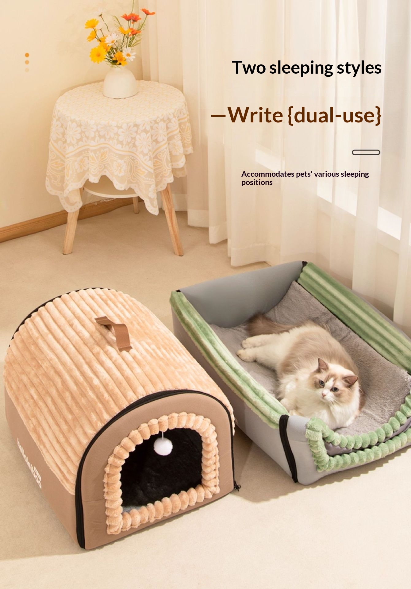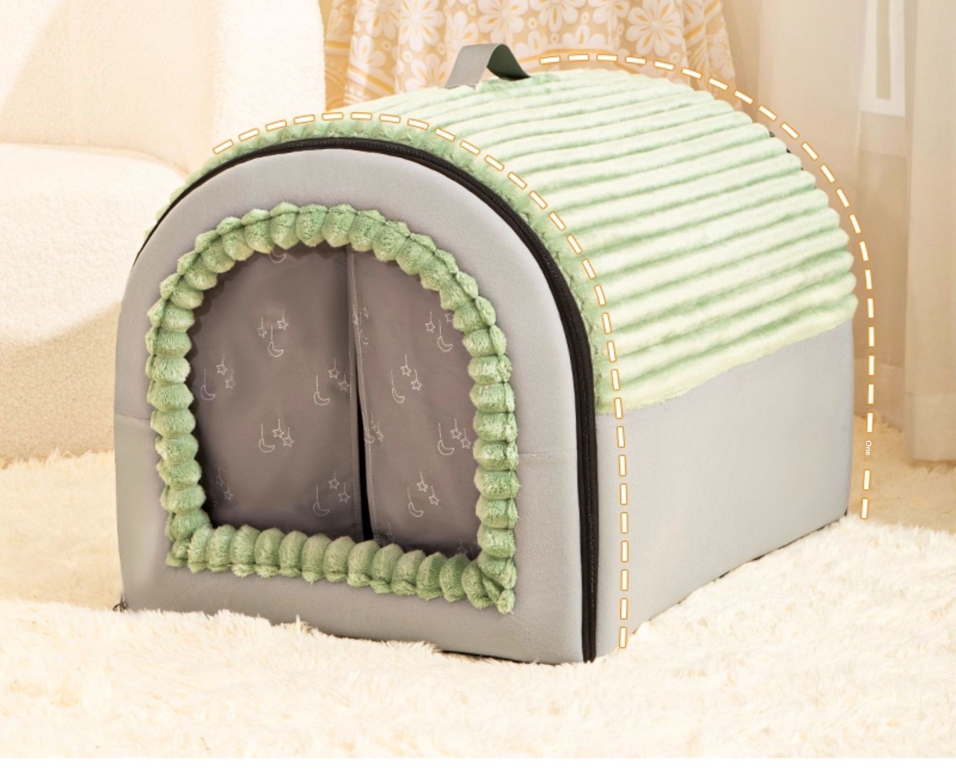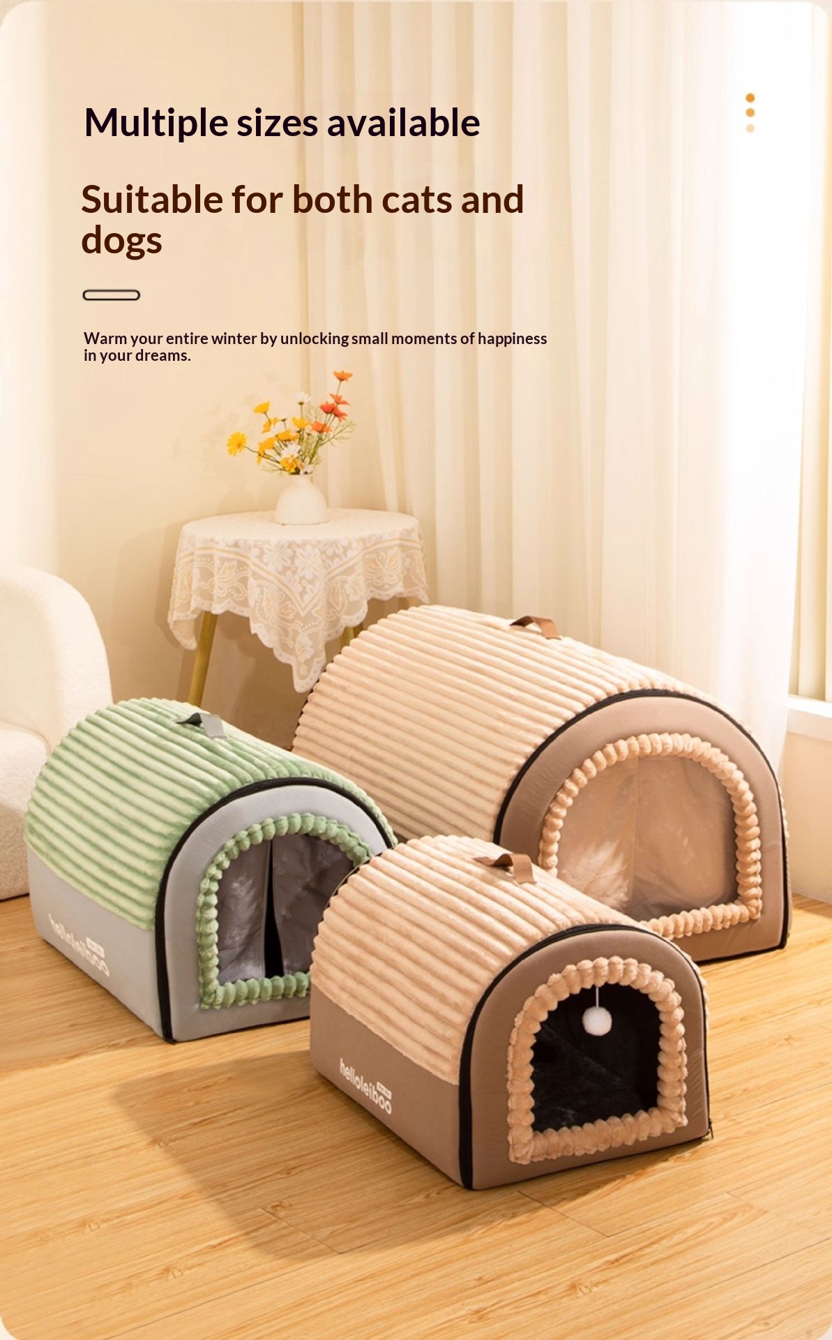 Colors: Gray—with door curtain [safety protection, keeps your pet warm in winter], Green—with door curtain [safety protection, keeps your pet warm in winter], Brown—with door curtain [safety protection, keeps your pet warm in winter]