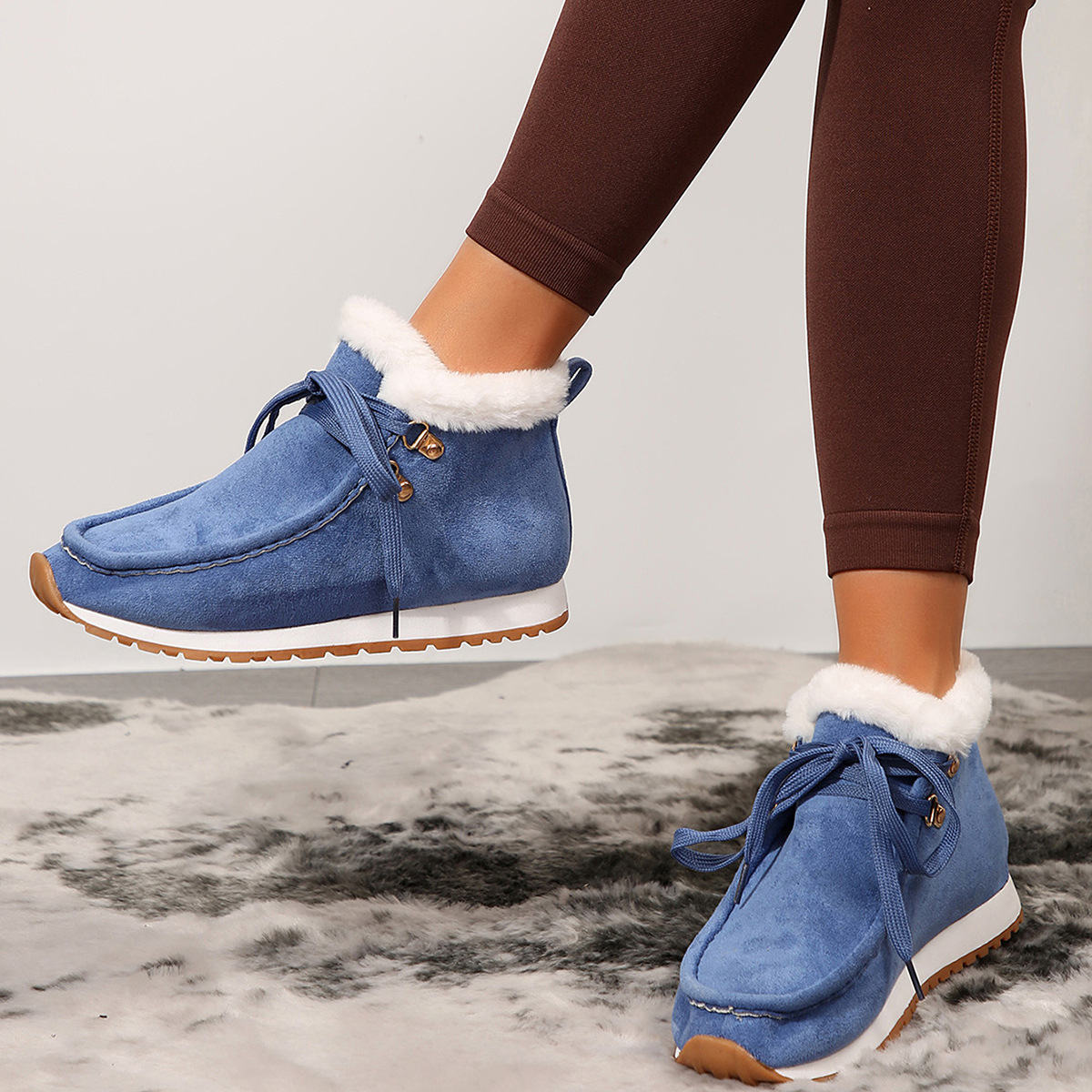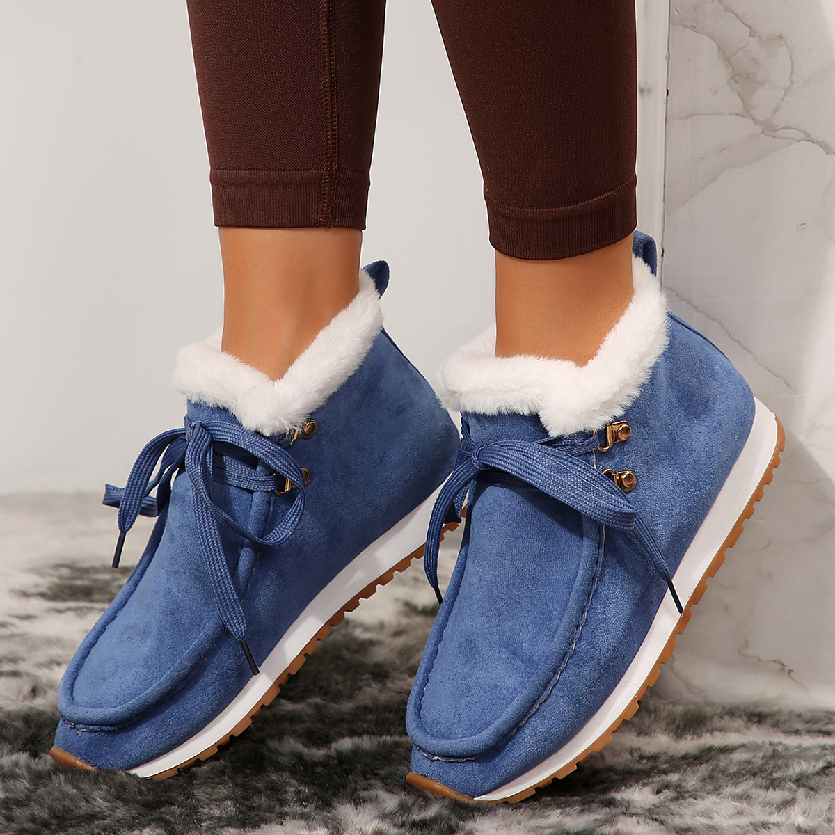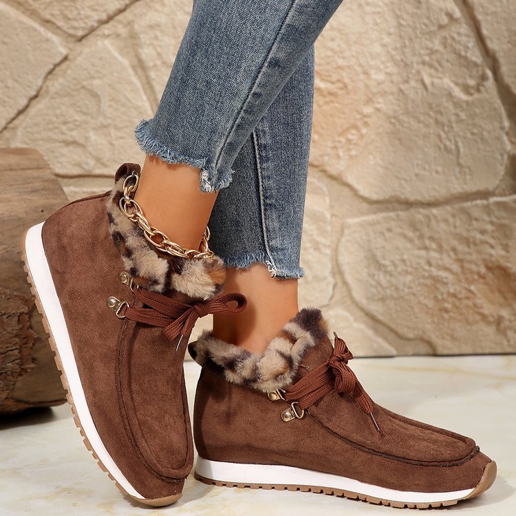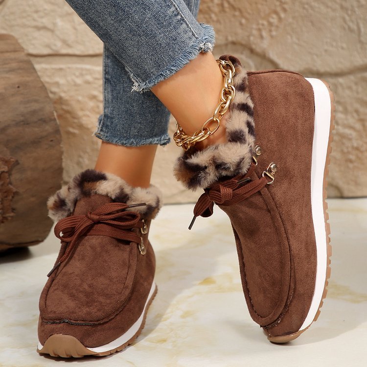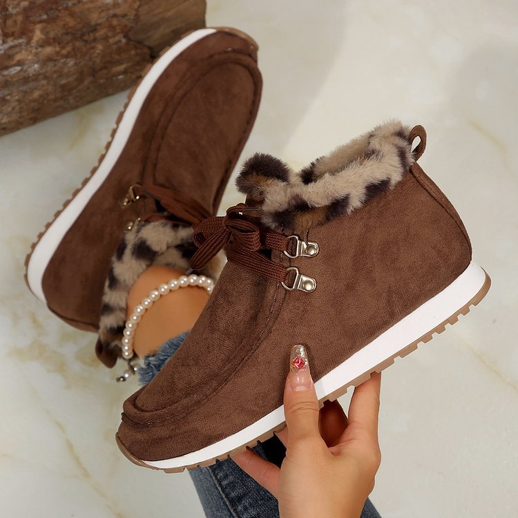 Winter Lace-up Snow Boots Casual Warm Plush Flat Shoes Women's Fleece Ankle Boot