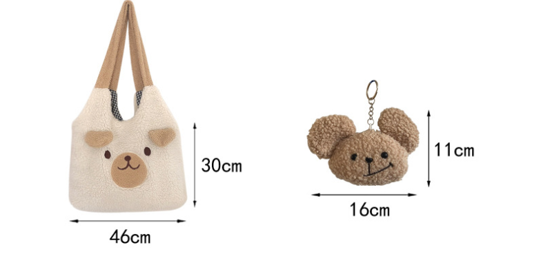 Color: beige ear bear (without pendant), brown ear bear (without pendant), beige imitation lamb bear shopping bag, brown imitation lamb bear shopping bag.