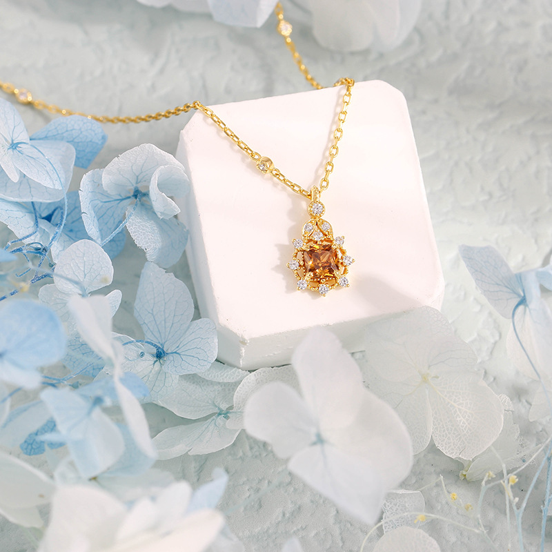 Color: coffee zirconium snowflake necklace