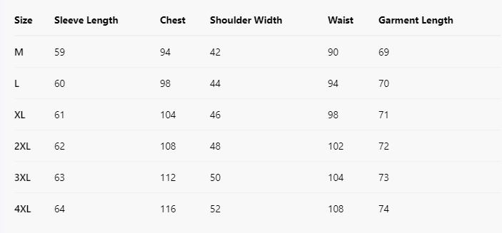 Sizes: 3XL, 2XL, M, L, XL