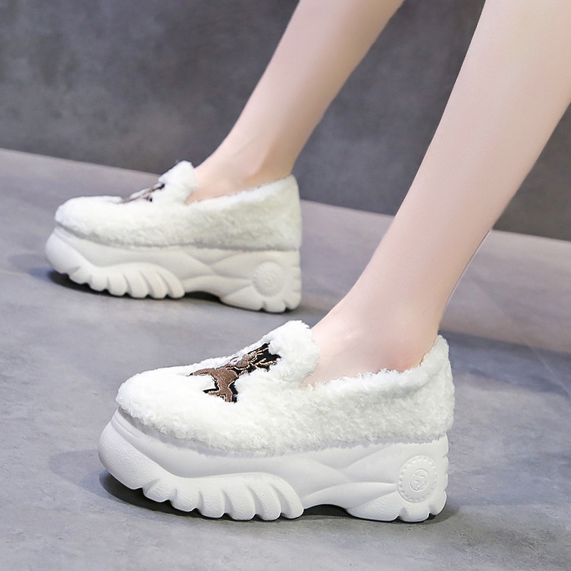 Winter Plus Velvet Inner-increasing Mid-heel Platform Women's Peas Shoes