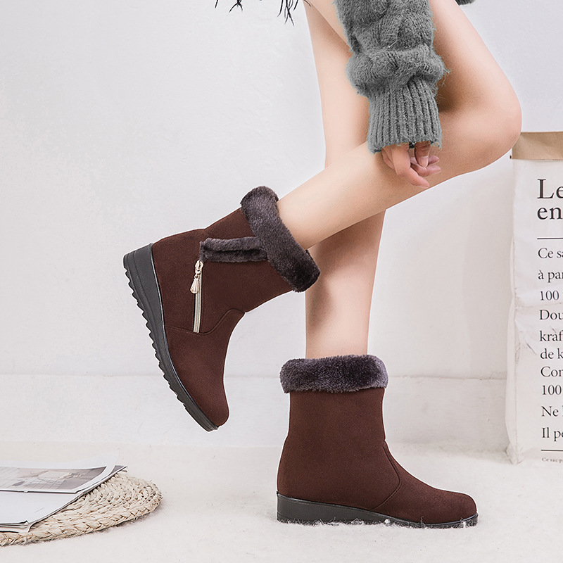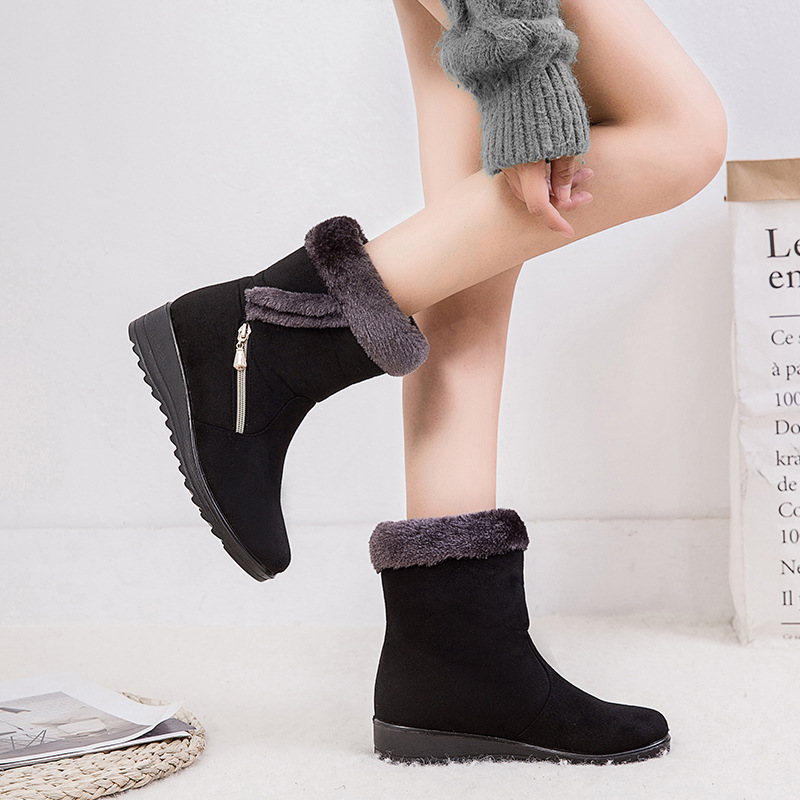 Vamp material: frosted Style: Leisure Sole material: Rubber Lining material: artificial short plush Upper height: mid top Heel shape: flat heel Sole technology; injection shoes How to wear: side zipper Function: warm and wear resistant Insole material: artificial wool