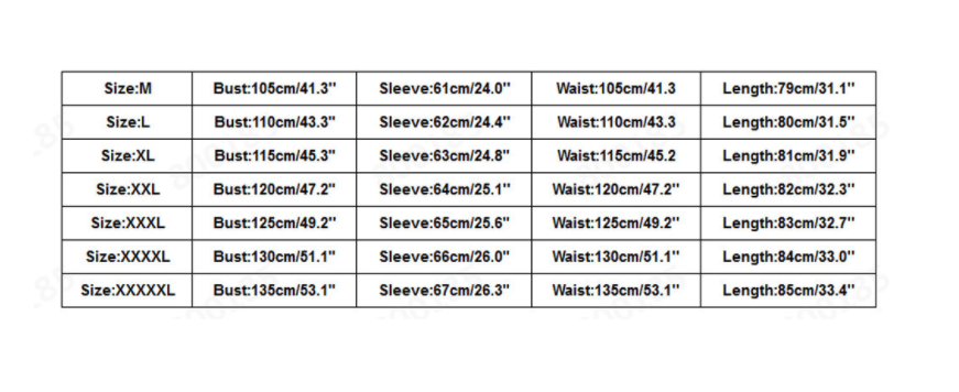 Sizes: M,L,XL,XXL,XXXL,XXXXL,5XL