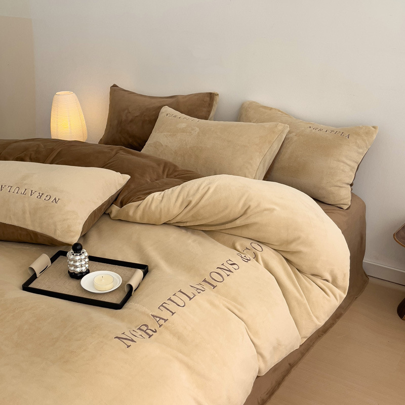 Winter Thick Coral Fleece Quilt Cover Double-sided With Velvet Flannel Bed Sheet Four-piece Set