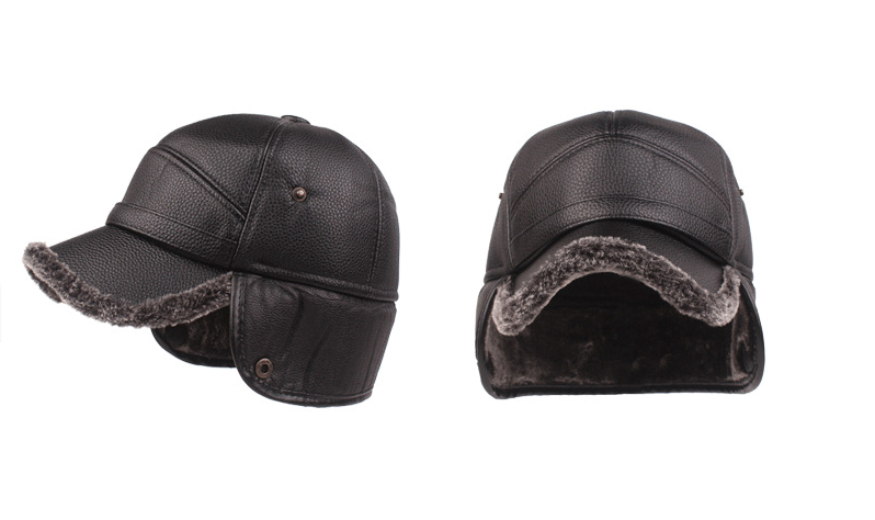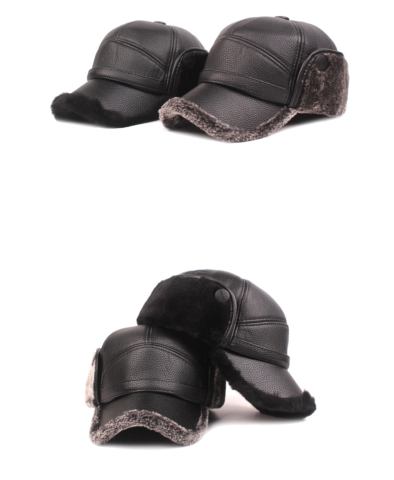 1. PU leather warm winter hat baseball cap with ear cover neck warmer.