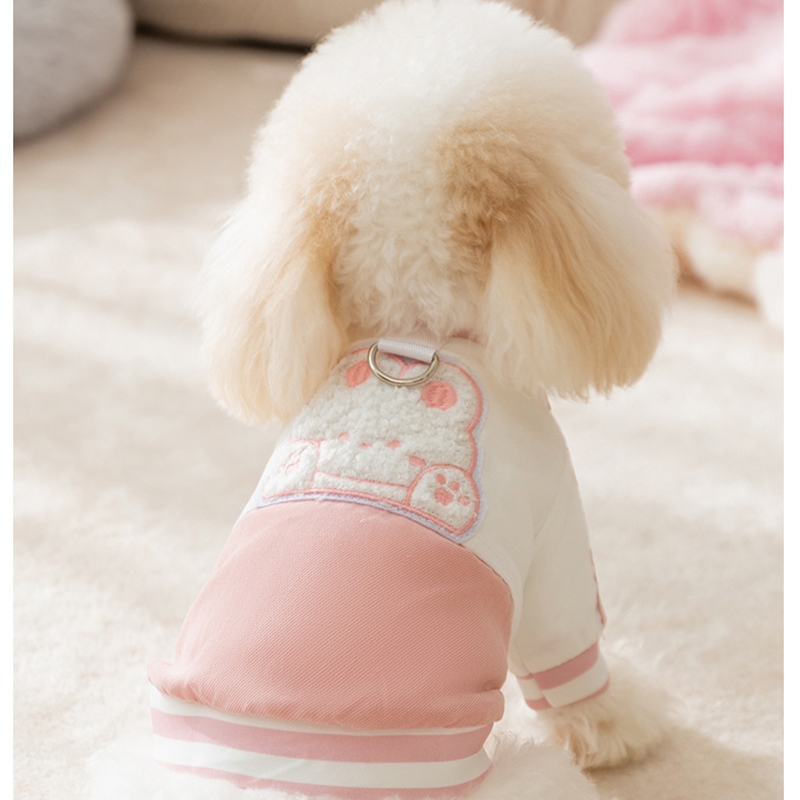 Add a playful touch to your pet’s wardrobe with this Bunny Embroidered Pet Jacket! Featuring a pink-and-white color block design, a fuzzy bunny embroidery, and an integrated leash ring, this jacket offers both charm and practicality. The soft fabric ensures comfort, while the bunny detail and striped trims add a whimsical, stylish flair. Perfect for casual outings or cute photoshoots, this jacket combines adorable design, functional leash attachment, and cozy wear, making it a must-have for pet parents who want their furry companions to stay fashionable and ready for walks.