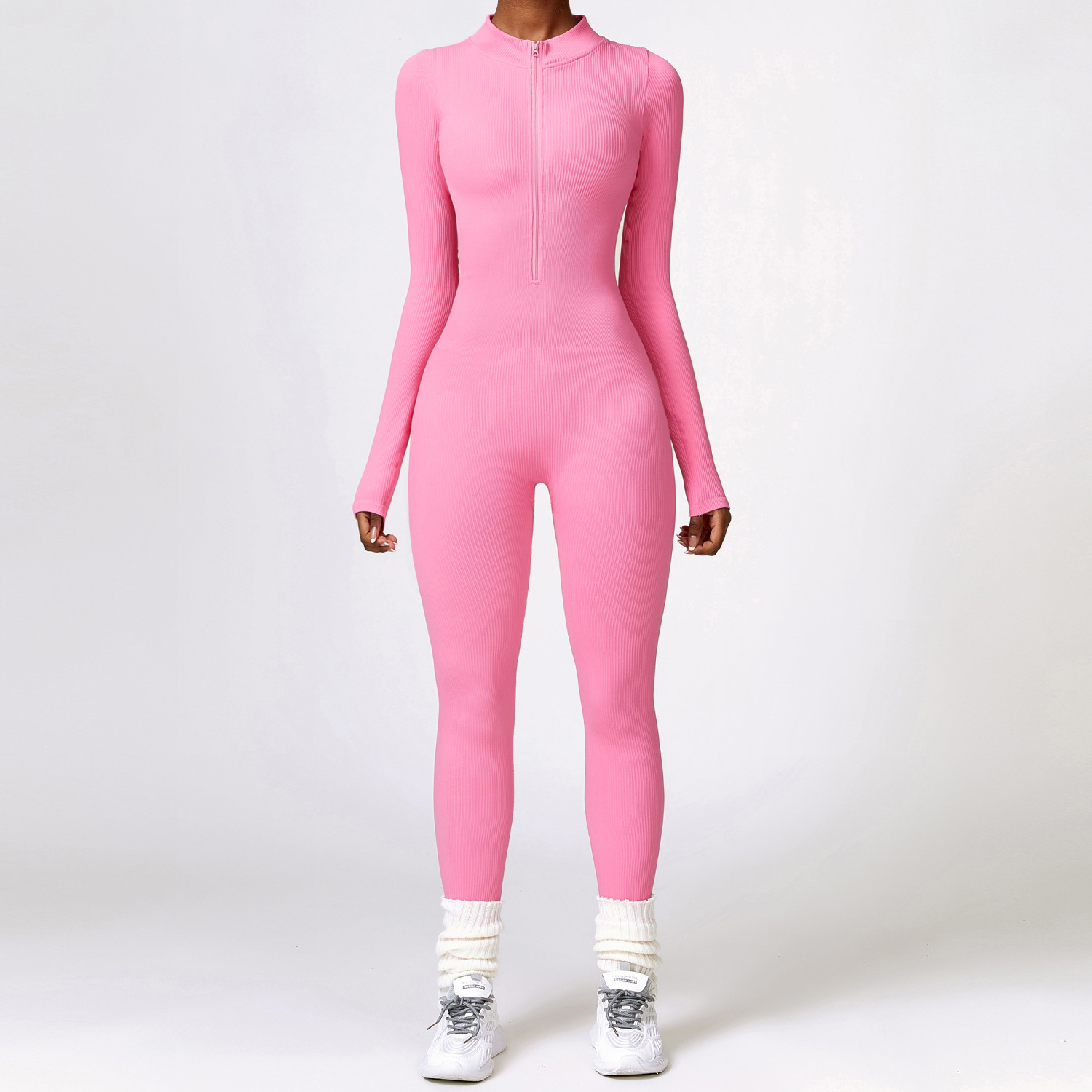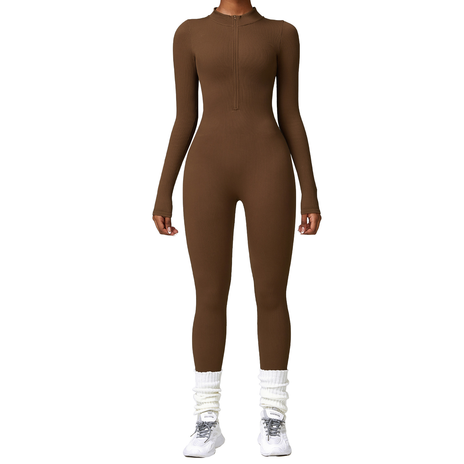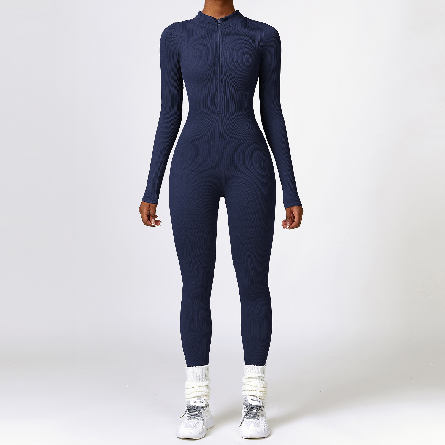 Winter Tight Long Sleeve Yoga Jumpsuit Zipper Belly Contracting High Strength Sports