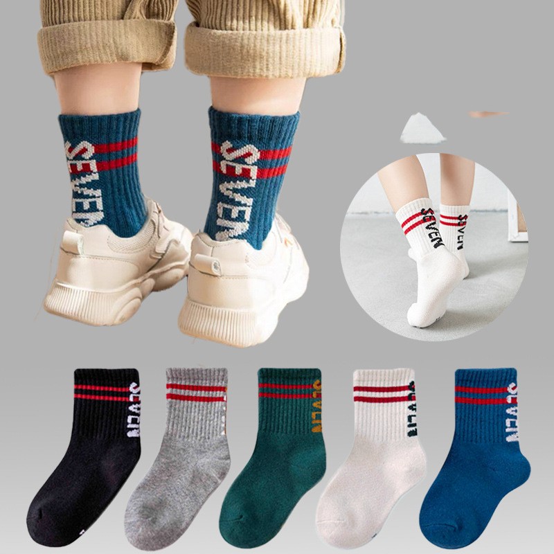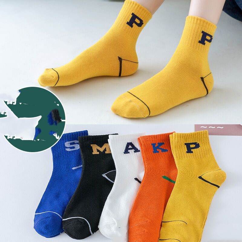 Style 22 autumn and winter socks with two stripes and letters 5 pairs,