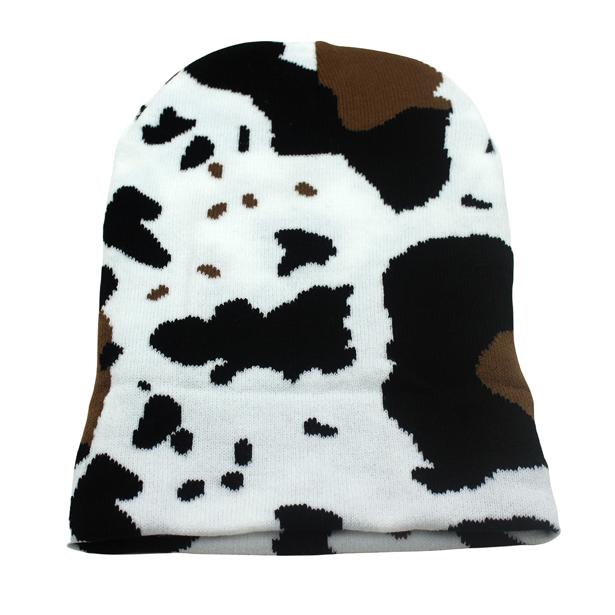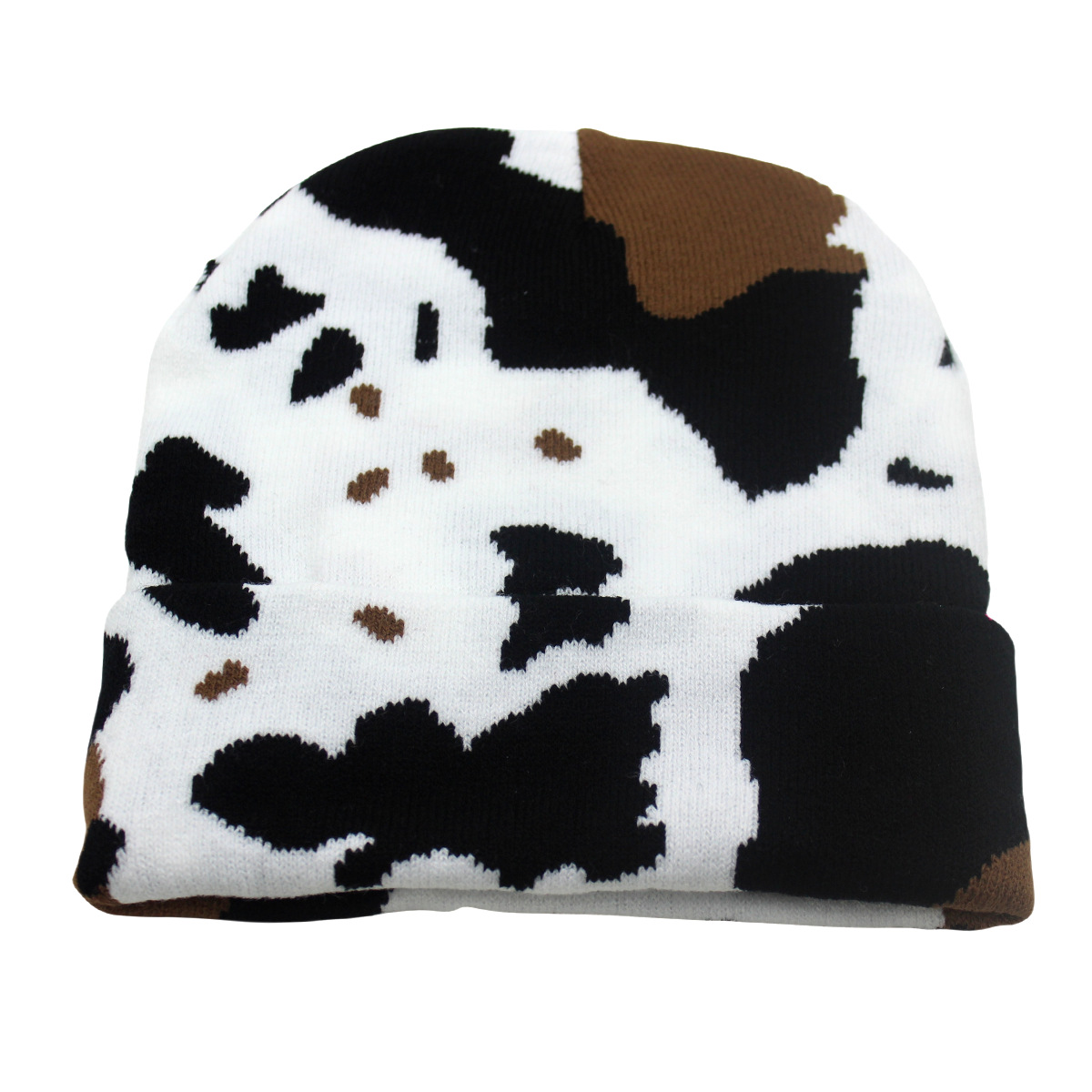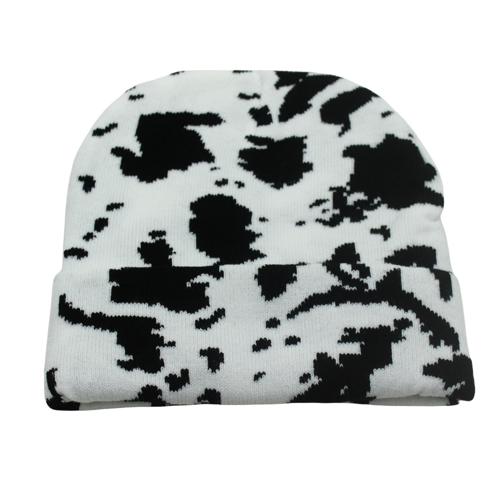 Winter Warm Cow Pattern Knitted Hat For Men And Women Curled Edge Woolen Hat