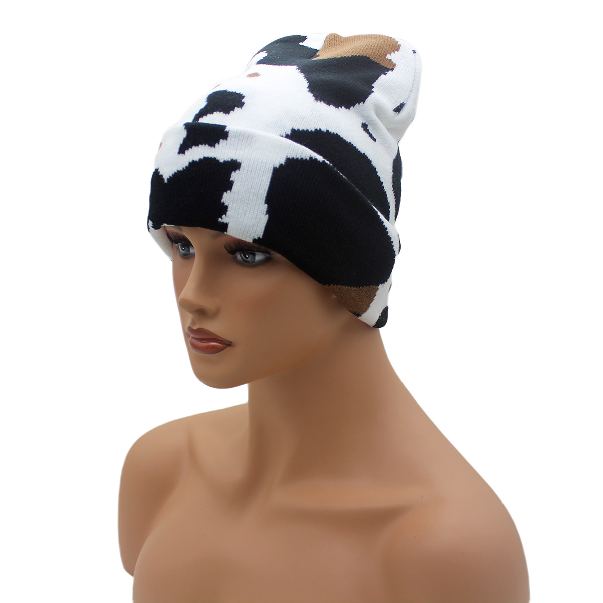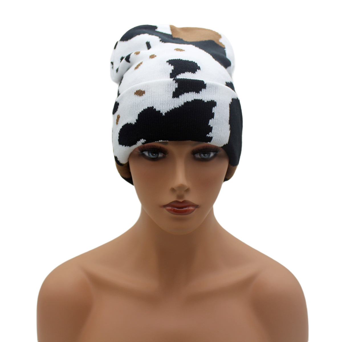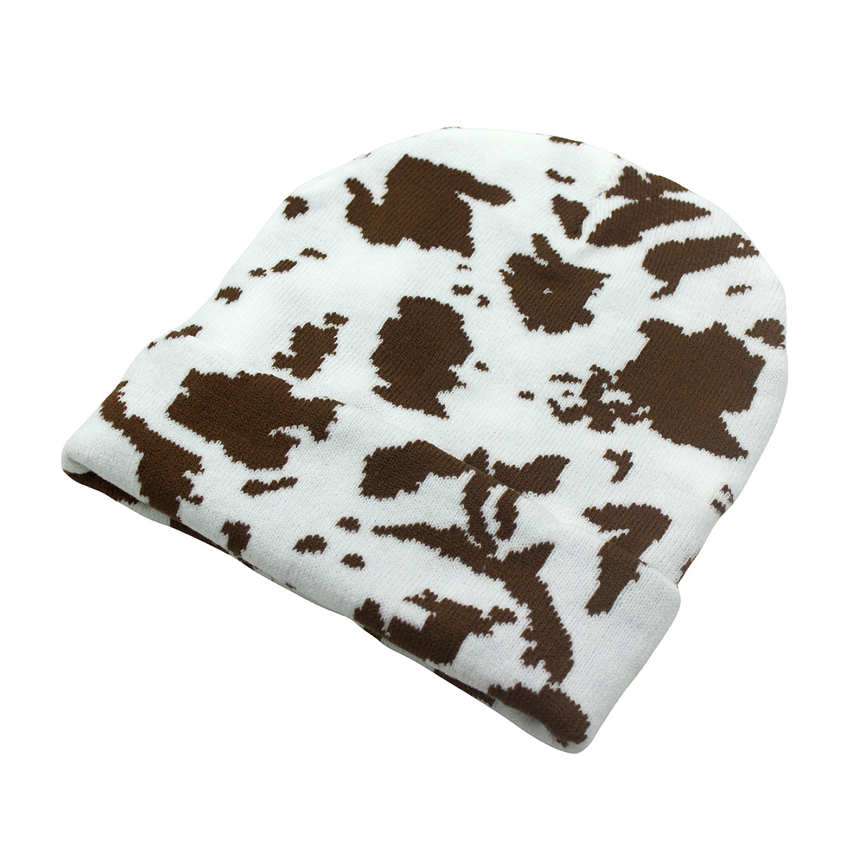 Winter Warm Cow Pattern Knitted Hat For Men And Women Curled Edge Woolen Hat