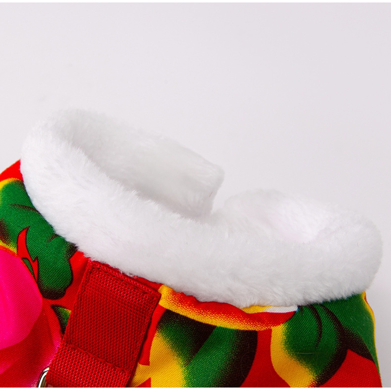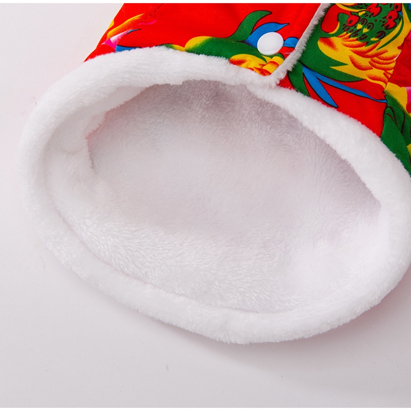The coat is lined with soft white faux fur for exceptional warmth and comfort, ensuring your furry friend stays cozy in cooler weather. It also comes with a metal leash ring for convenient walks, combining functionality with fashion. Ideal for small to medium-sized pets, this coat is not just an outfit but a statement piece that blends cultural heritage and practical design. Let your pet shine with this eye-catching, warm, and stylish apparel!