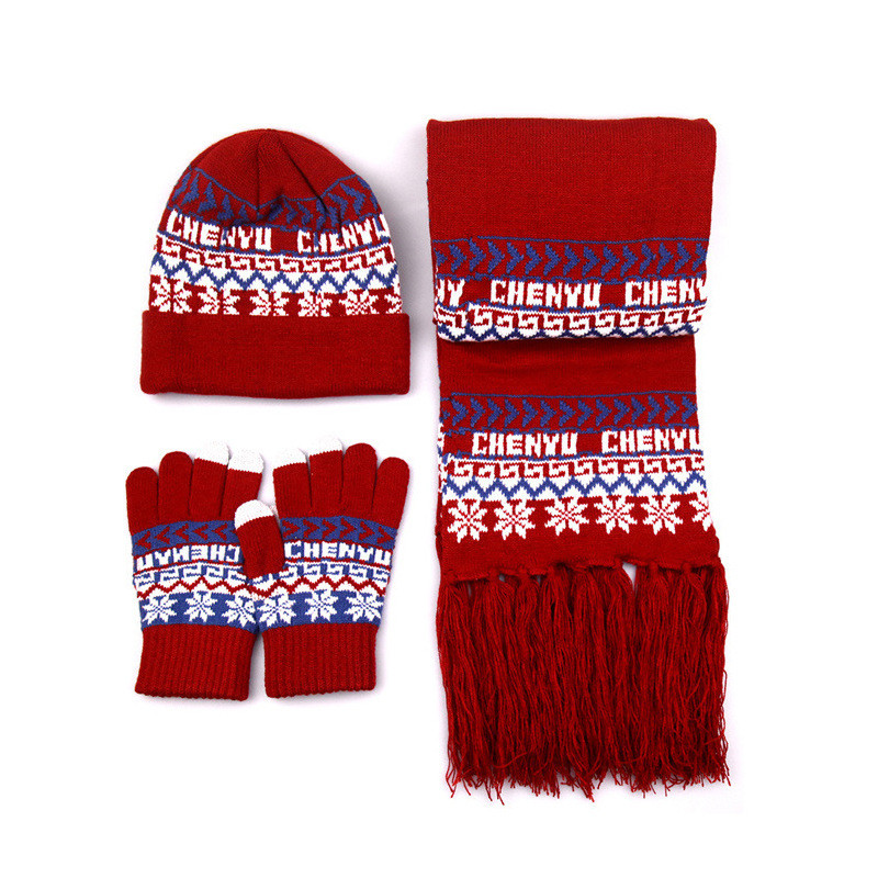 Combination: three-piece scarf, hat and gloves