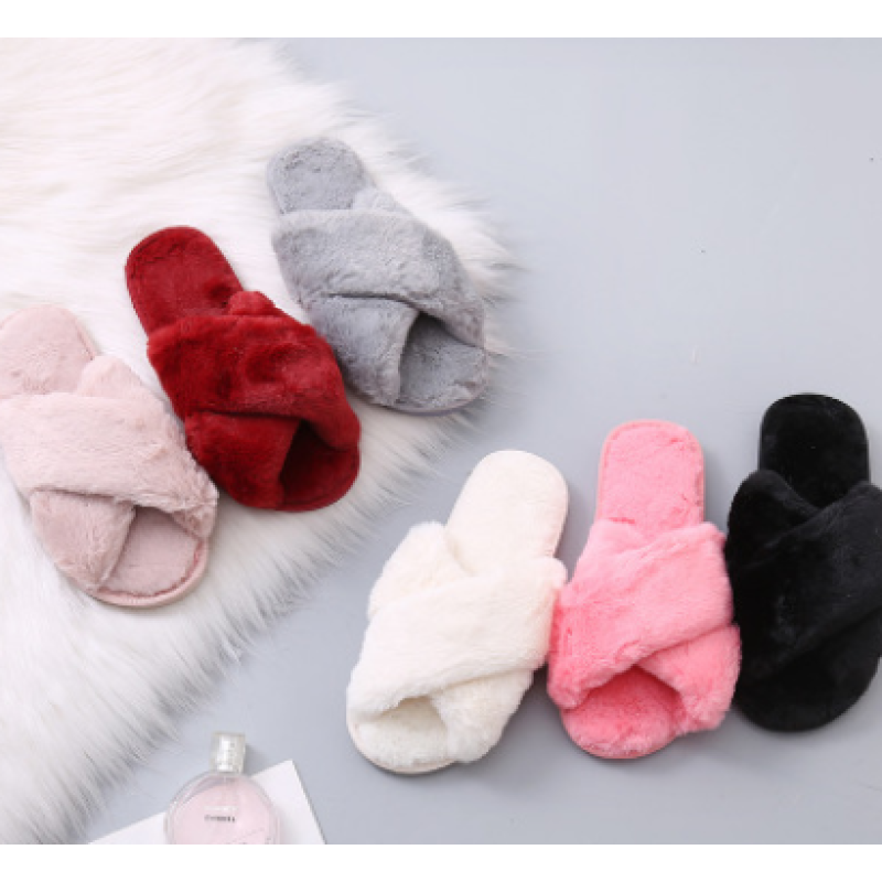 Winter Women Home Slippers with Faux Fur Fashion Warm Shoes Woman Slip on Flats Female Slides Black Pink Plus Size 41 (China)