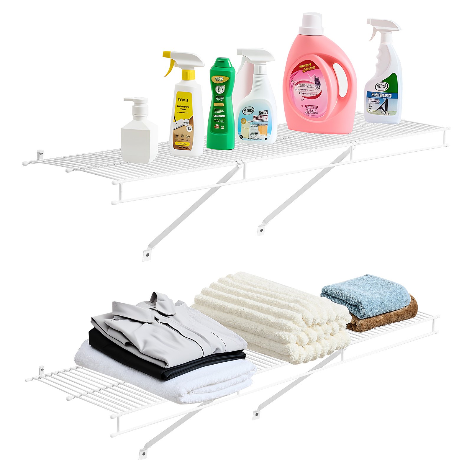 Wide Applications: Including a hanging rod for clothes and a shelf for storing shoe boxes, detergents, and tools, our wire hanging shelf is ideal for bedrooms, closets, laundry rooms, and garages. It helps create a tidy, organized space