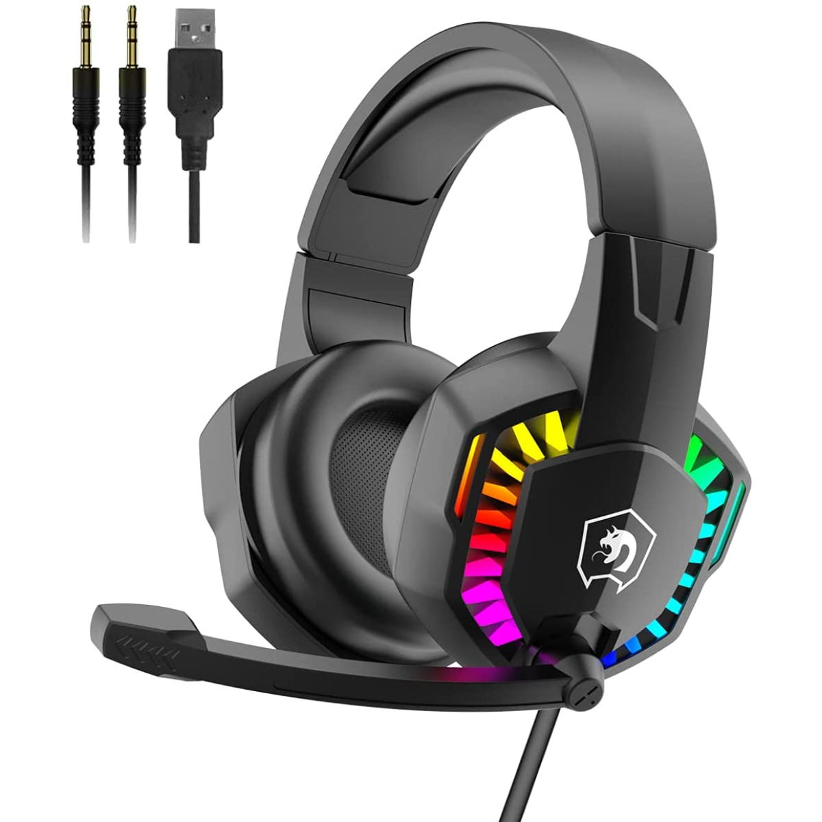 【Wide Platform Compatibility】This RGB gaming headphone is equipped with 3.5mm audio jack, also include a 1 to 2 splitter, easy plug and play, can fit with most of device which support 3.5mm interface, and be compatible with your laptop which support 32-bit and 64-bit Win7/Win8/Win8.1/Win10/XP, and PS4/Xbox one/Switch, perfect for game or daily use.