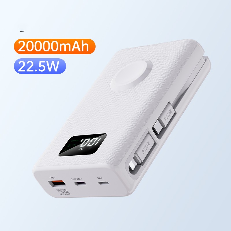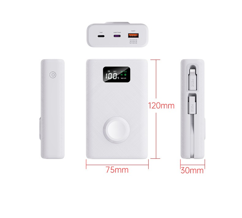 Function: multi-U-port output magnetic charging, two-way fast charging, self-contained data cable, self-contained screen display and wireless charging.