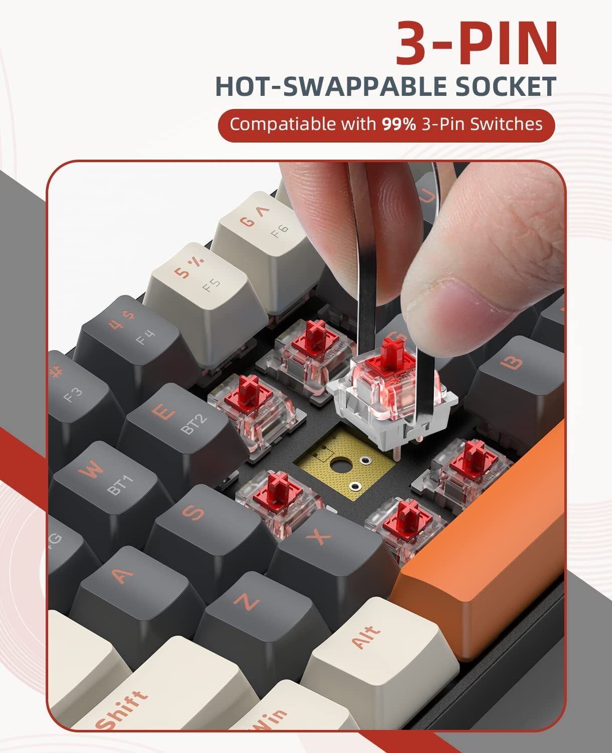 • 【Fully Hot Swappable Customized Switch Keyboard】The hot swappable PCB supports 3 Pin switches without soldering,with a switch puller for easy removal.Let you enjoy and customize your own unique keyboard.Blue switch provides a clearer "click" sound to the touch,with 50 million button-tested durability,60 +/- 20 grams of stroke force and 2.0 +/- 0.6 mm stroke,Perfect for gamers,typists,and people who like clicks.