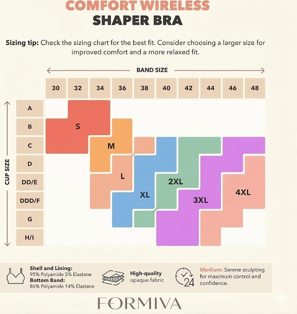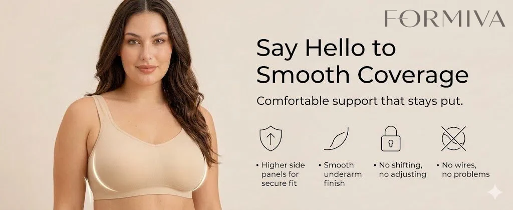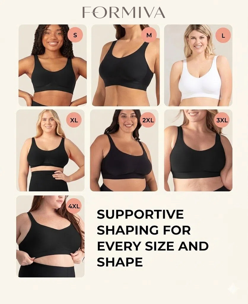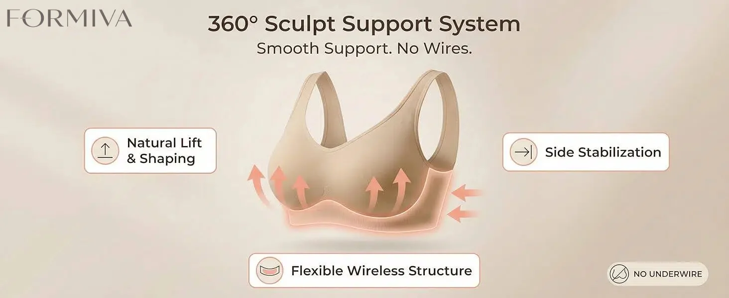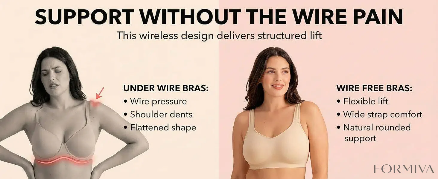 ALL-DAY SUPPORT & COMFORT: This Formiva wireless bras for women style offers stretchable straps for natural lift and smooth support. Ideal for those seeking bras for women with wire-free comfort and a light push-up effect, all in one sleek and functional design.