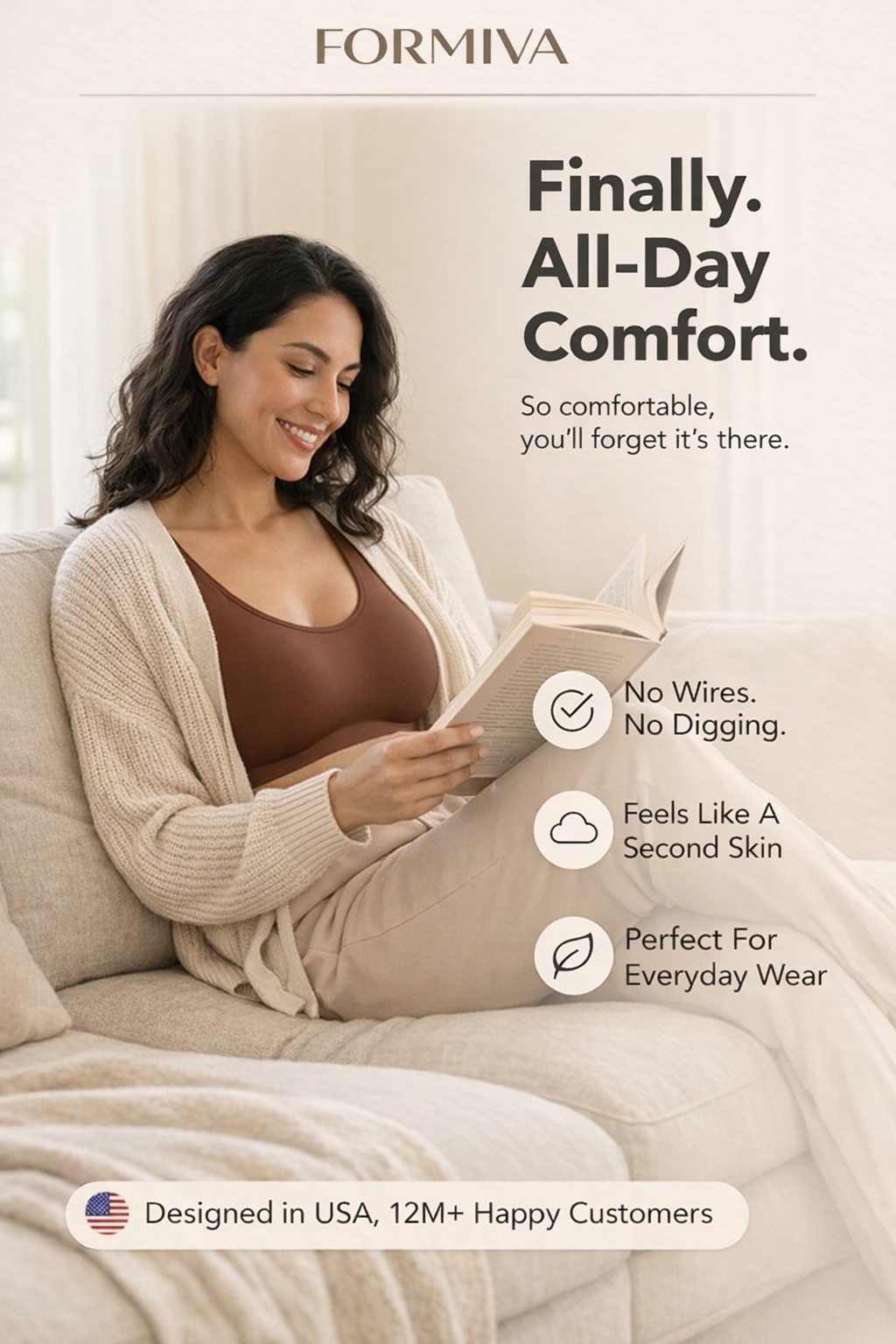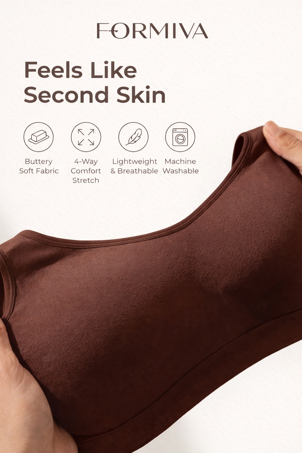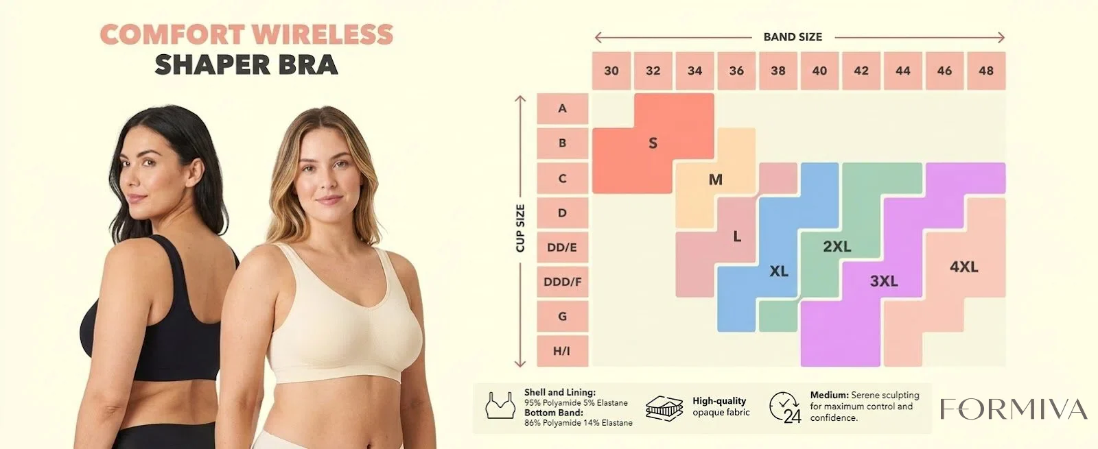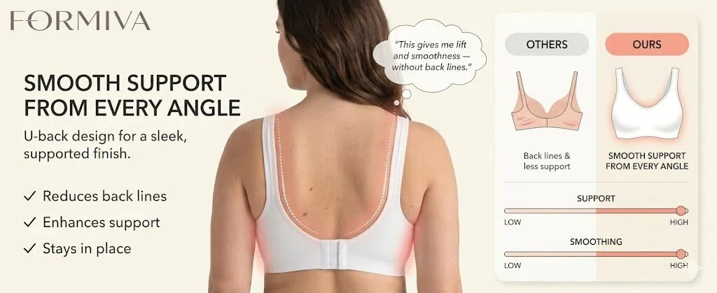 ALL-DAY SUPPORT & COMFORT: This Formiva wireless bras for women style offers stretchable straps for natural lift and smooth support. Ideal for those seeking bras for women with wire-free comfort and a light push-up effect, all in one sleek and functional design.
