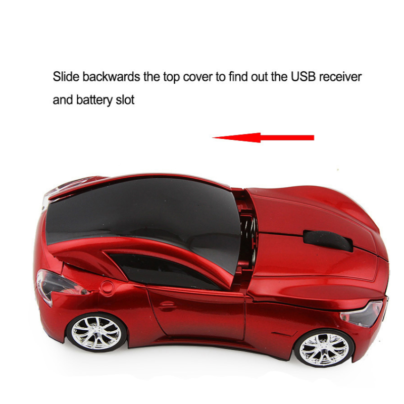 Wireless 2.4 GHz car sports mouse, comfortable touch.